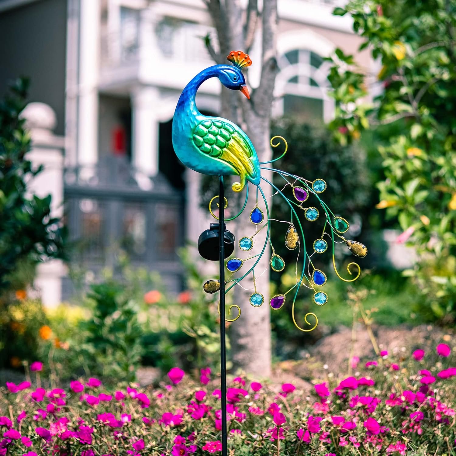 Great Present Idea: This peacock solar yard light can be as one of outdoor decorations for patio. It also will be a terrific garden present choice when you send to you friend or family on any festival. vibrant peacock design made this garden decor backyard light a good present for family or friends