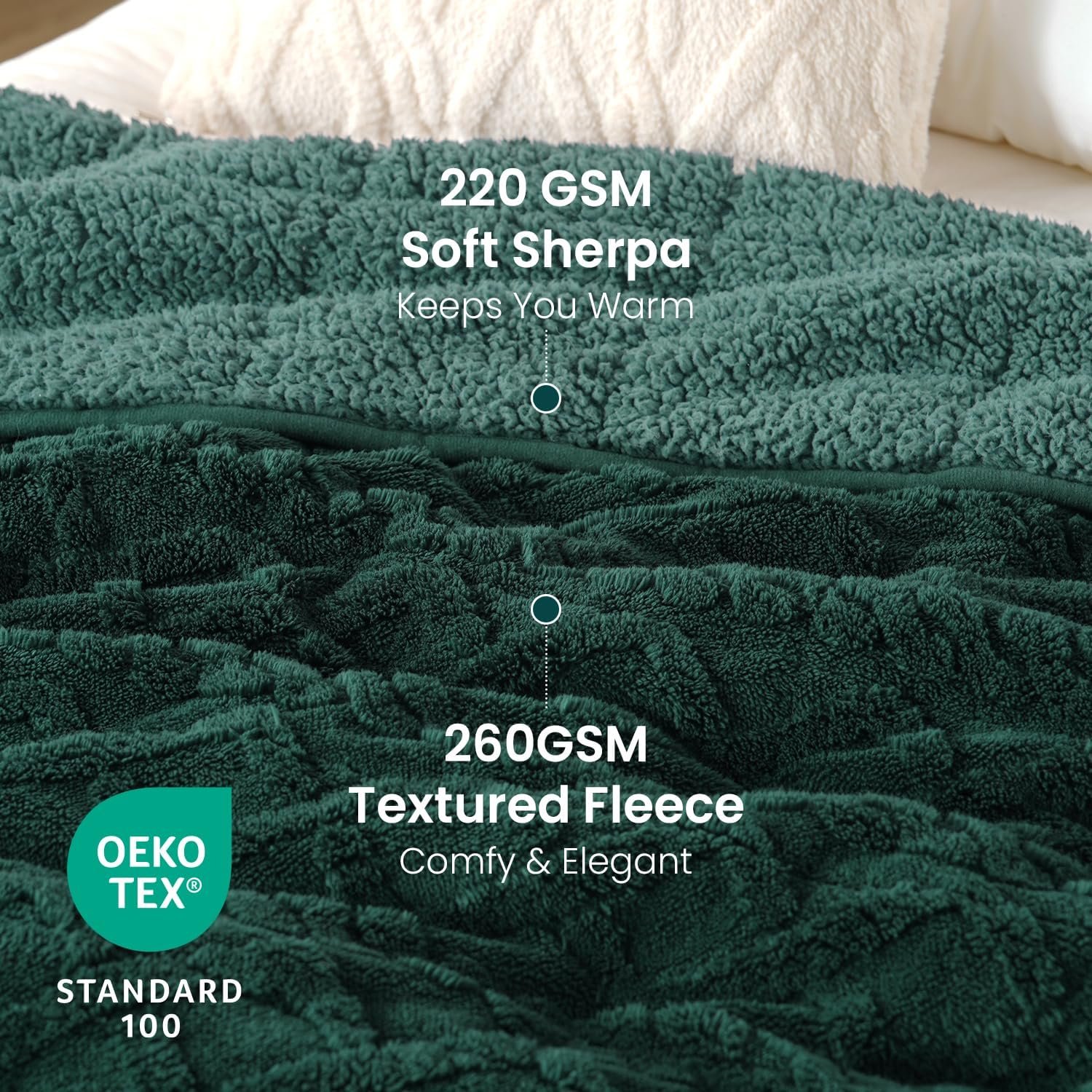 Ultimate Comfortable Weighted Blanket: Crafted with 220GSM plush sherpa on one side and 260GSM luxurious jacquard sherpa on the other, the weighted blanket is incredibly comfortable and super thick to keep you warm and cozy the year round. It also adds an elegant touch to any room decor
