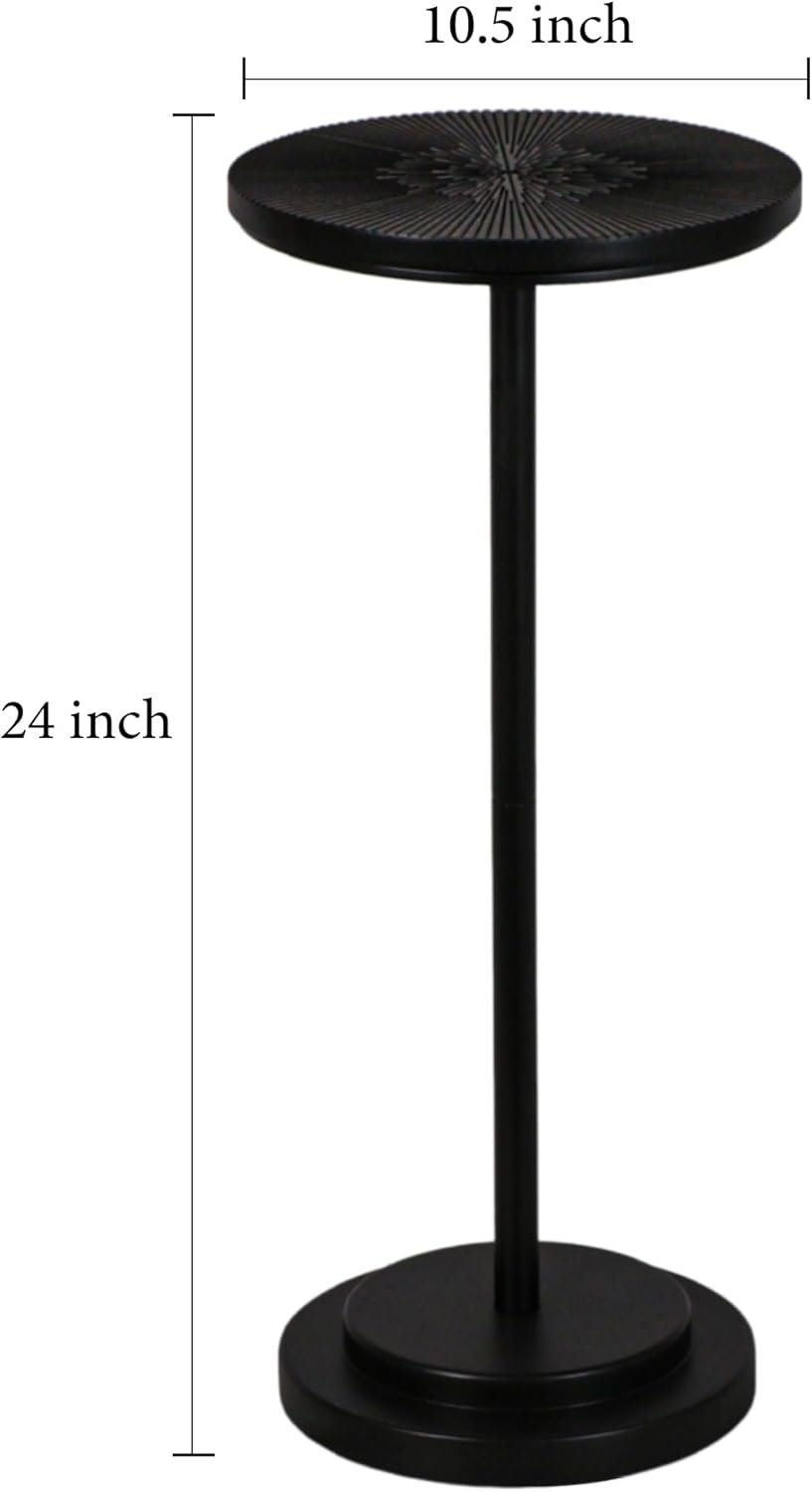 Drink Table, Carved Table Top Martini Table, Small Side Table, Weighted Base Pedestal Table for Living Room, Bedroom, Modern, Black, 1-Pack