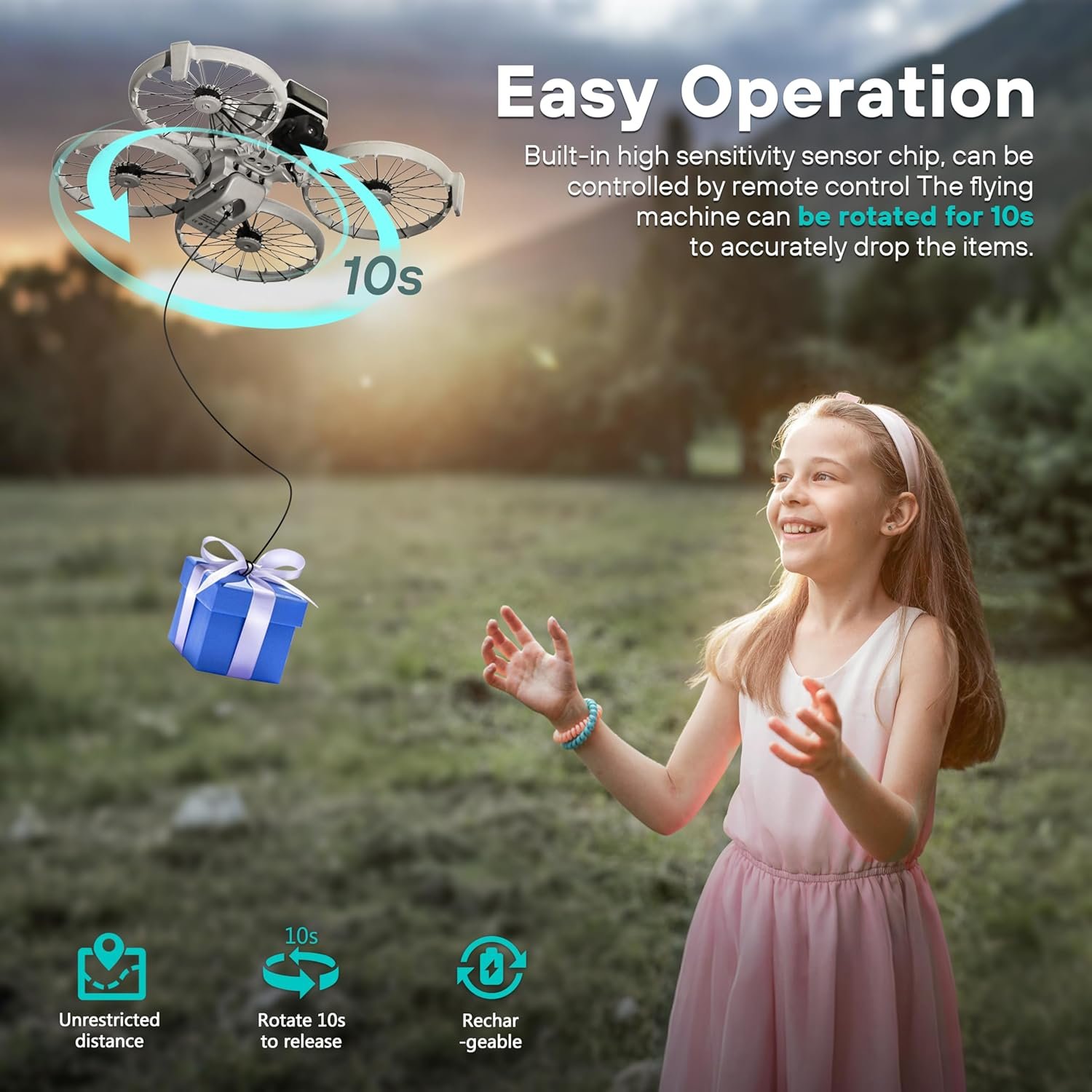 Simple Operation: the Flip drone airdrop device has no additional remote control, does not support remote control drop. The drop distance is the same as the remote control distance of the drone. The drone can be released after rotating in place for 10 seconds, which is simple and easy to operate
