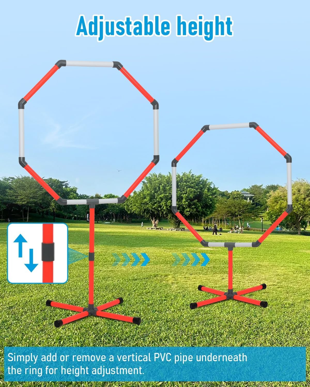 【Durable All-Weather Performance】Constructed with industrial-grade PVC pipes and reinforced connectors, our hoops withstand indoor/outdoor use. UV-resistant materials prevent fading, while flexible joints allow safe collisions – perfect for intense racing sessions