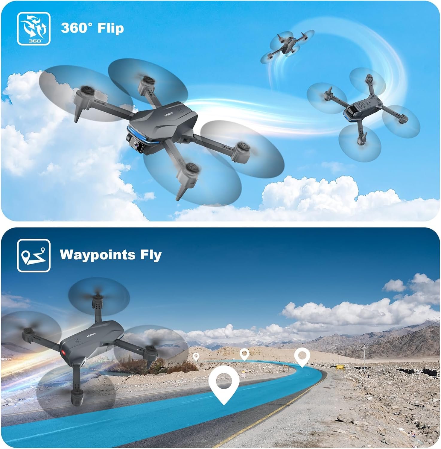 Foldable Drone, Full Accessories, Thoughtful design– The package includes a portable bag for convenient outdoor travel. Equipped with two 1050mAh batteries, enjoy an extended flight time for up to 26 minutes of fun. It comes with remote control batteries, propeller guards, and spare fan blades, allowing you to fly right out of the box with safety assurance. The powerful motors ensure safe & reliable operation,with built-in overcurrent protection. Foldable body make the drone small and portable.