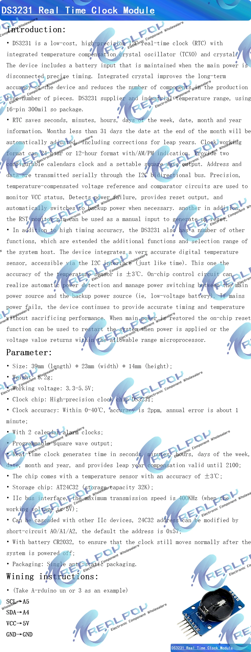 11 reviews for DS3231 AT24C32 IIC Precision RTC Real Time Clock Memory Module RTC DS3231SN/M Memory module For Arduino raspberry pi DIY KIT