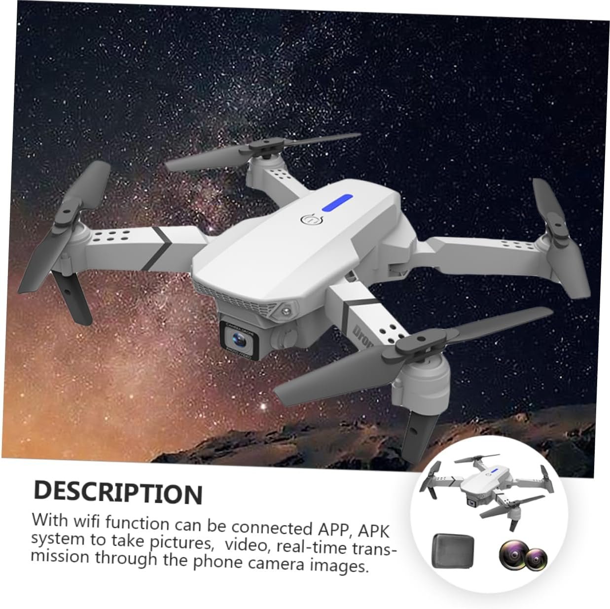 Dual camera :with function can be connected app, system to take pictures, video, real-time transmission through the phone camera images,Outdoor