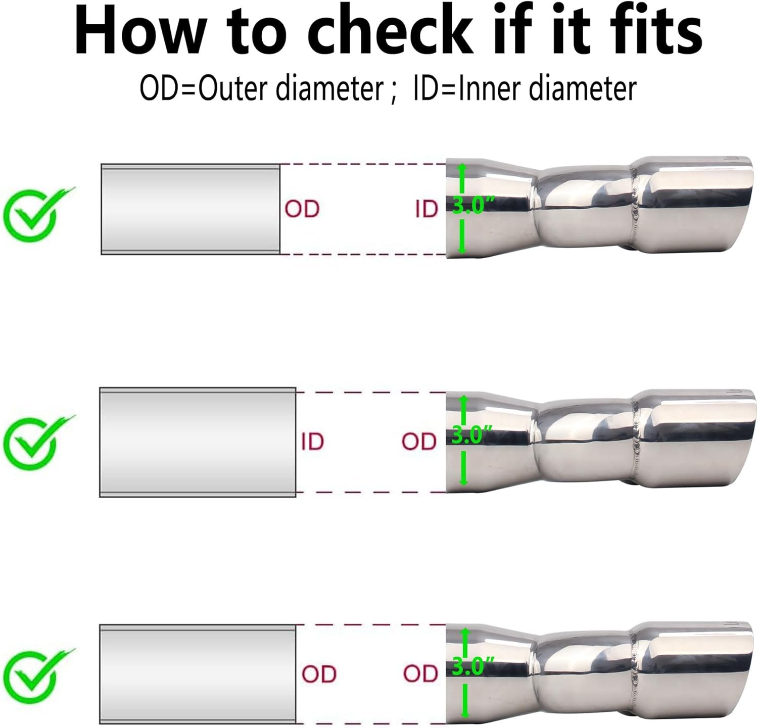 【Size】3 inch inlet diameter; 3 inch outlet diameter;Overall Length:9.5 inch exhaust tip.