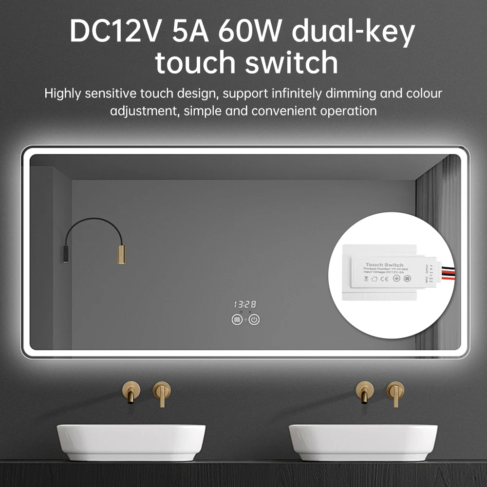 Dual Key Touch Switch 12V 5A 60W High Sensitive LED Driver Infinitely Dimming Color Adjustment Defogging Smart Switch