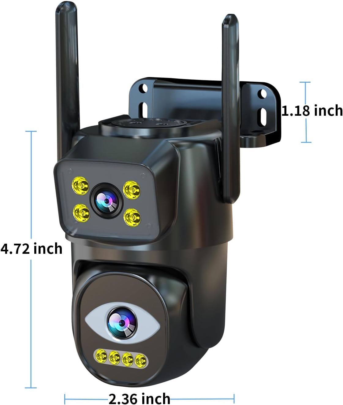 【PTZ and Automatic Tracking】The outdoor PTZ dual lens camera, The fix upper lens monitor the key area, ,the lower lens: supports 330° horizontal rotation and 90° vertical rotation, you could remote rotate camera view angel in your app and also the lower lens accurately sense the moving target and continue to track the movement,until the target is out of the field of view of the wifi camera,then turn back to its care view position.