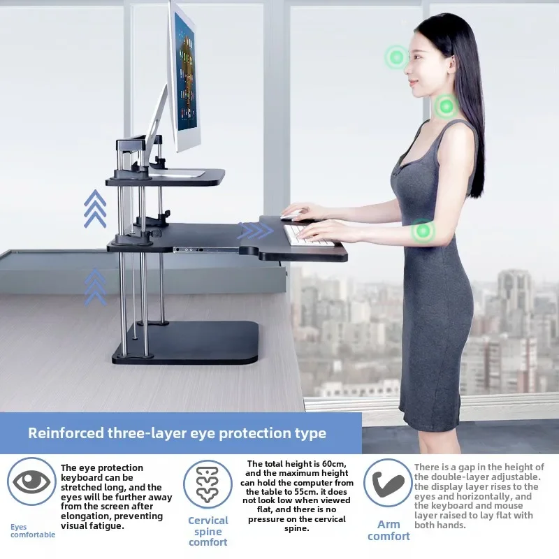 Dual Monitor Standing Desk Converter – Height Adjustable Sit Stand Desk with Keyboard Tray and Gas Spring
