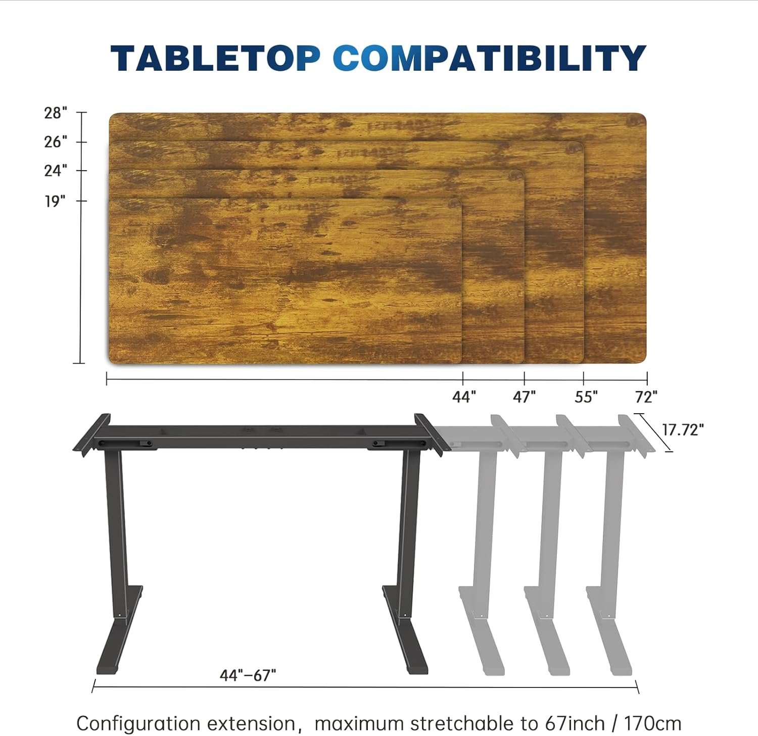 Excellent Design: The lifting height is 28-47inch. It can be manually adjustable according to the thickness of your table top. The minimum and maximum heights can be set according to your personal requirements.