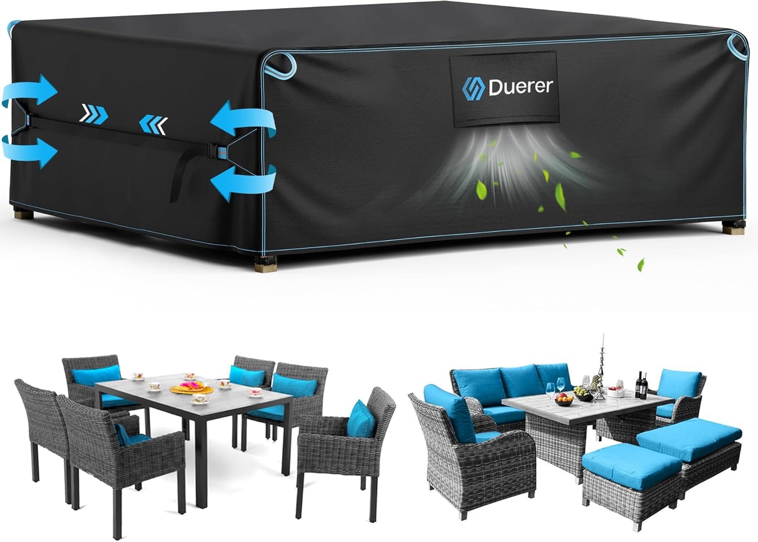 Duerer Patio Furniture Covers Waterproof 420D Outdoor Furniture Covers 96″L X 63″W X 40″H, for Patio Furniture Sets, Sofa, Table and Chair Set Cover, Anti-UV Rain Snow Dust Wind-Proof with Air Vent