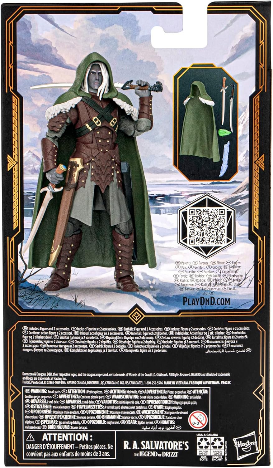 THE LEGEND OF DRIZZT: This premium Dungeons & Dragons action figure is inspired by the series of fantasy novels The Legend of Drizzt, written by R.A. Salvatore, and features packaging with a facsimile signature