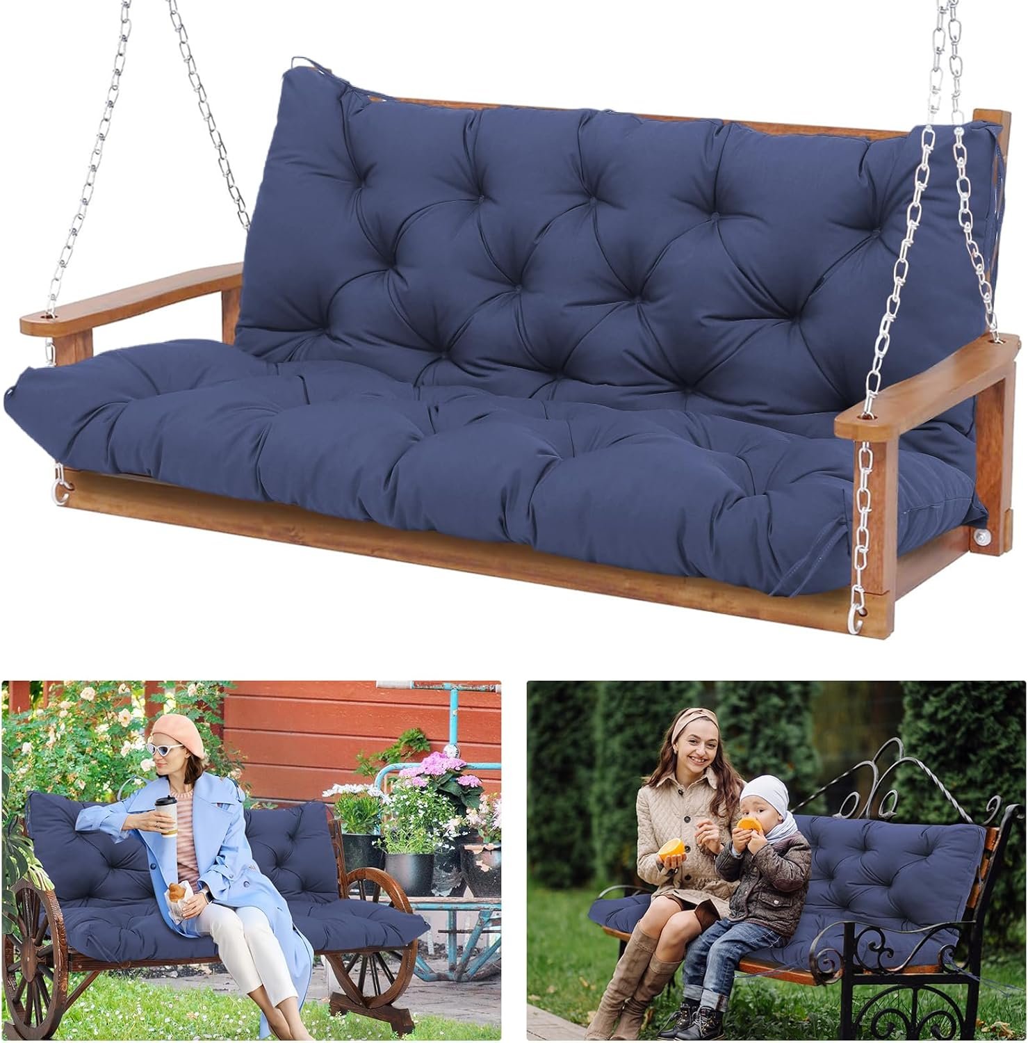 High-Elasticity Outdoor Swing Cushions: Our outdoor swing cushion, made with high-elasticity materials, requires you to lay the waterproof 60×40″ porch swing replacement cushion flat for 10-48 hours upon receiving it. Alternatively, continuous patting for several minutes on the patio swing cushions allows it to slowly restore its original fluffy state. The back-supported swing replacement cushions enhances your swing experience while adding aesthetics and comfort to your backyard swing Bench