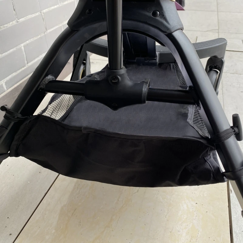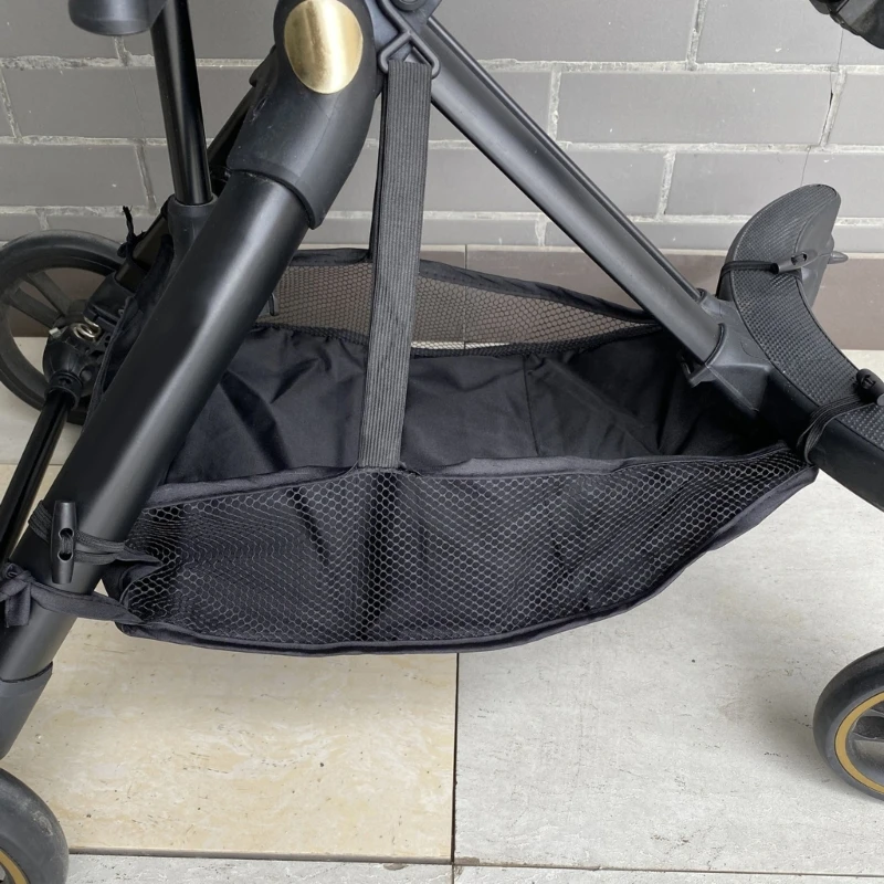 This versatile stroller basket is not only functional but also fashionable, with its simple design and black color, it complements any stroller and adds touches of elegancies to your parenting travel.