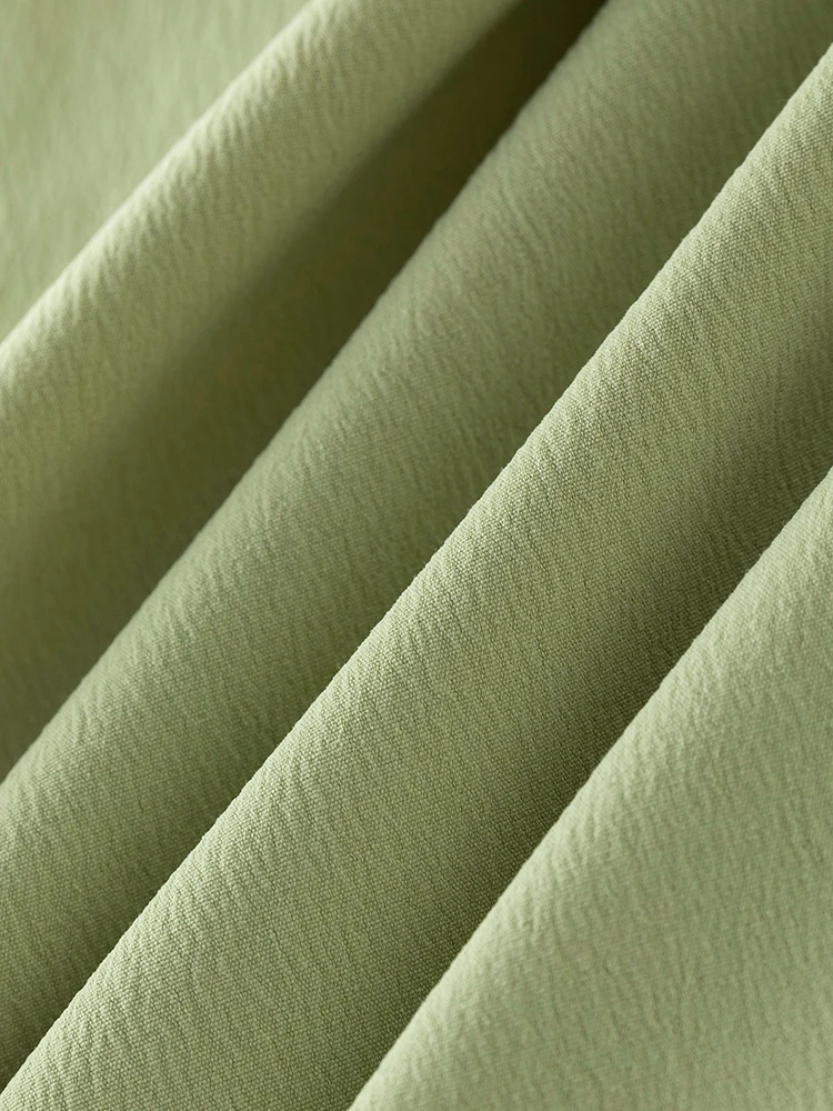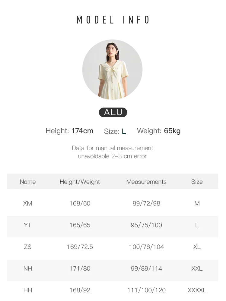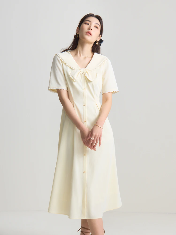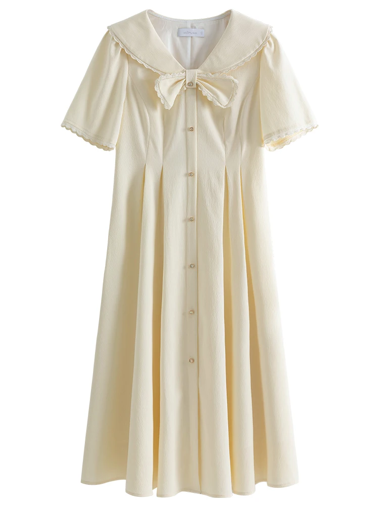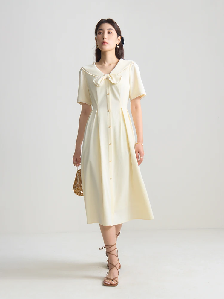 DUSHU 【2 Colors】Sweet Peter Pan Collar Design Women Single Breasted Dress Green Short Sleeve Mid-Calf A-LINE Skirt 24DS82275