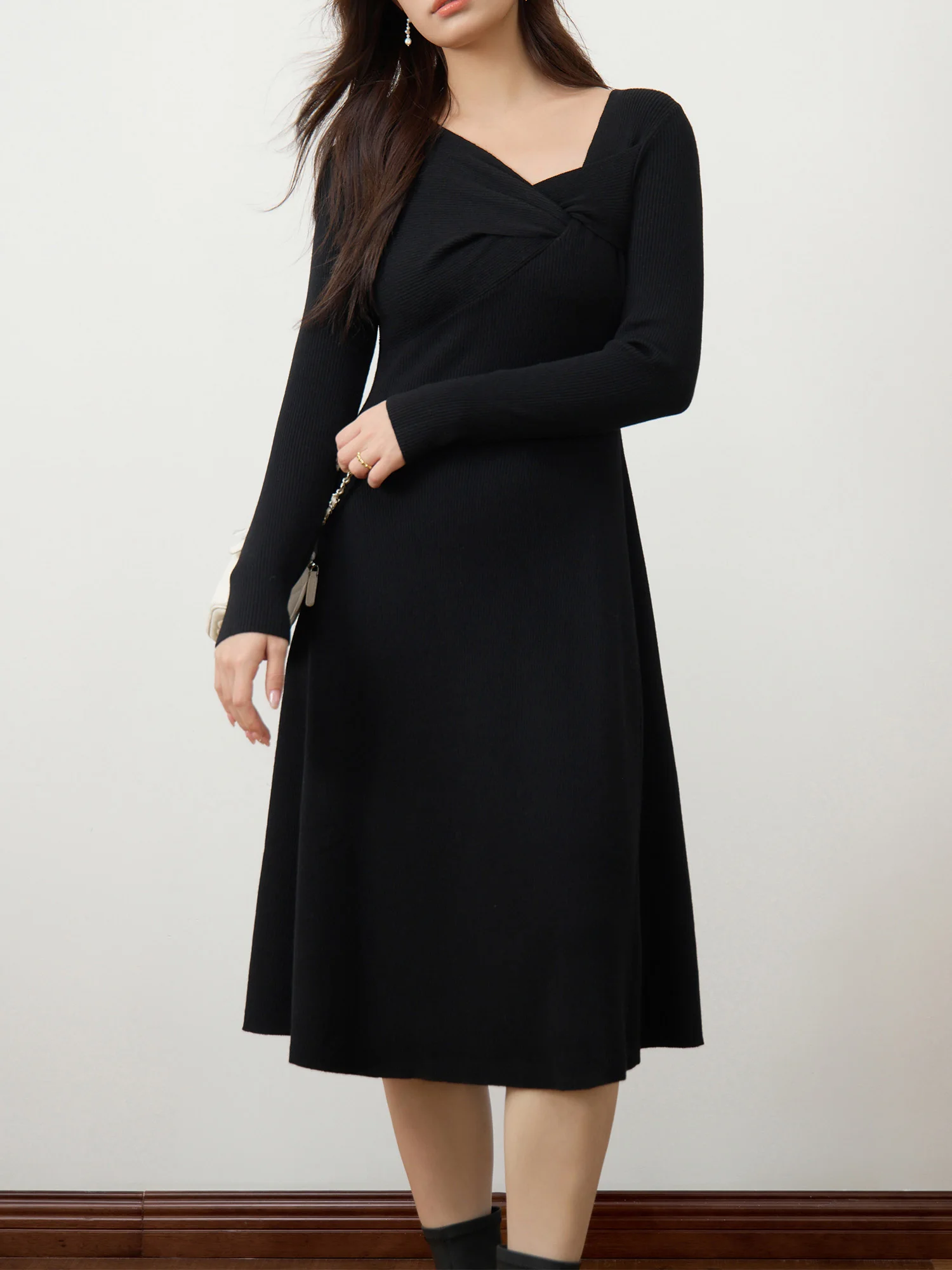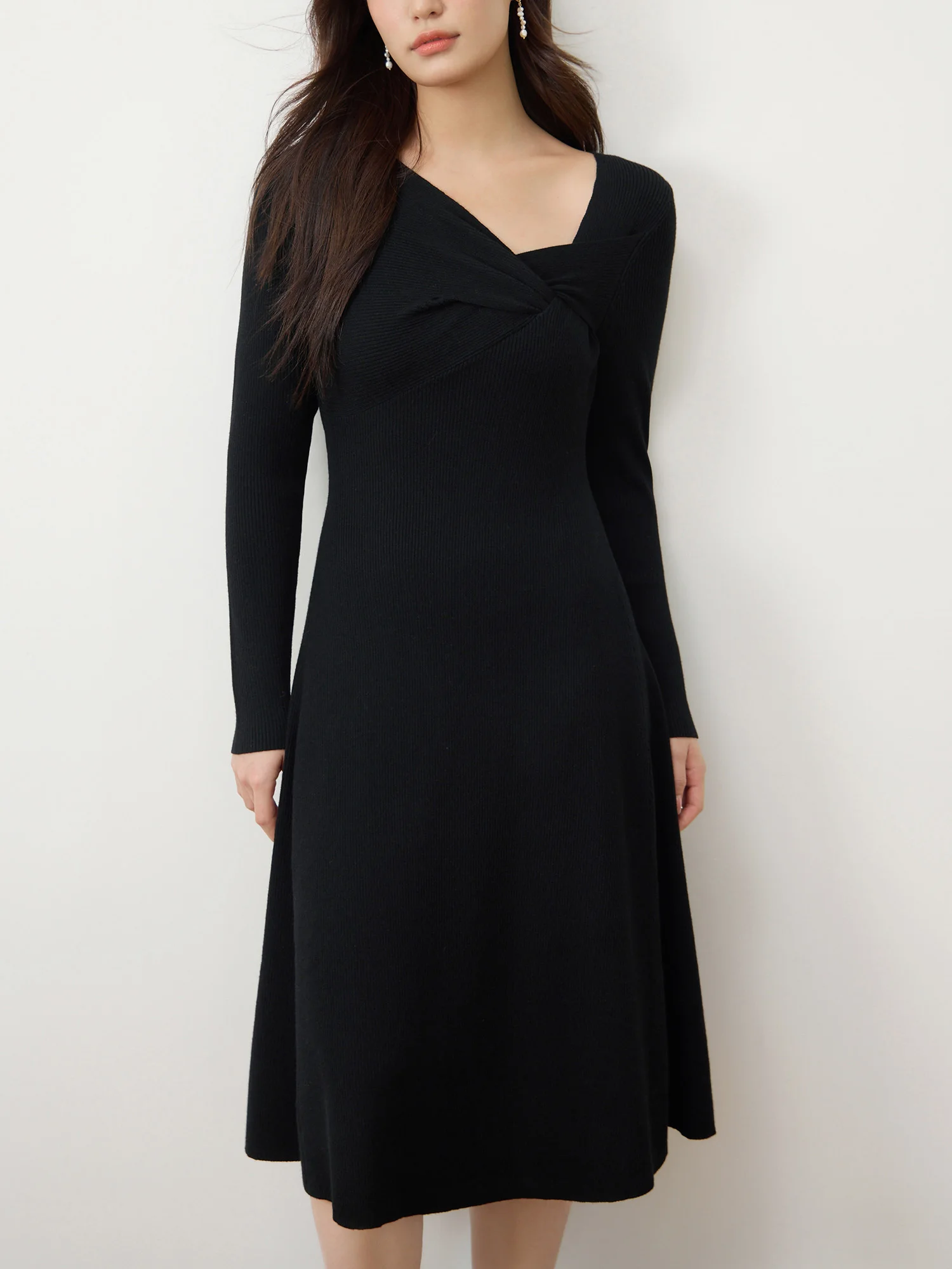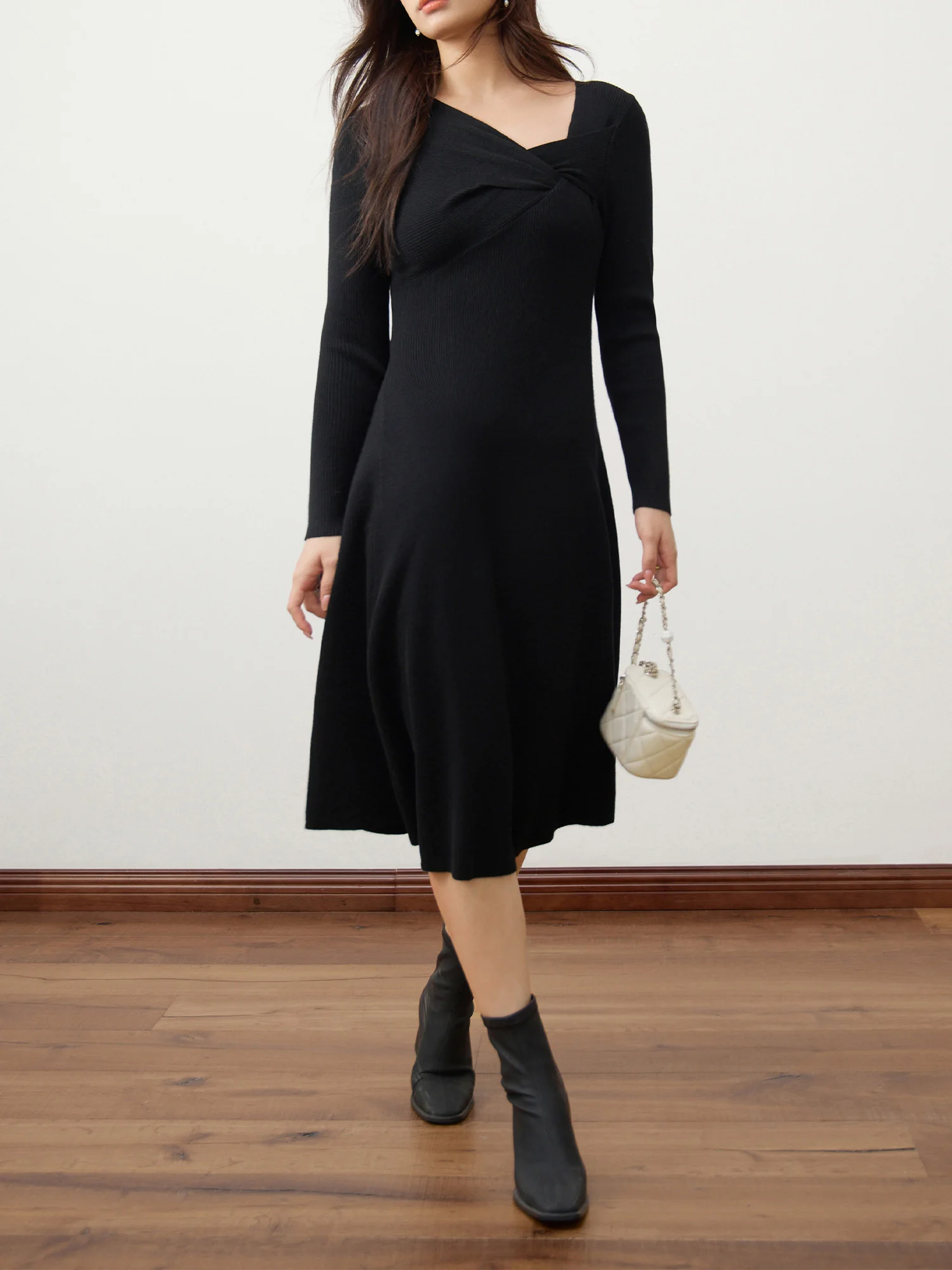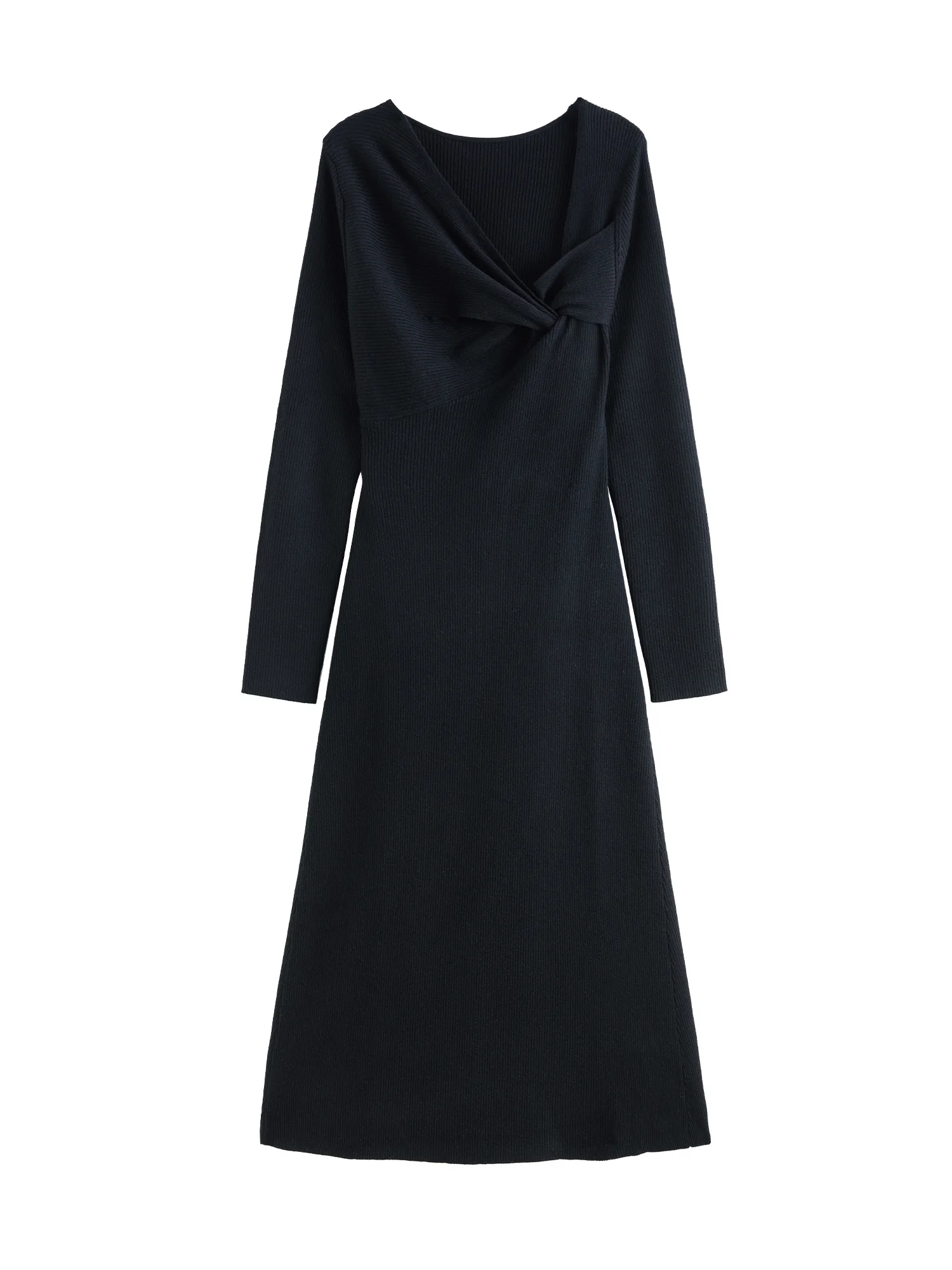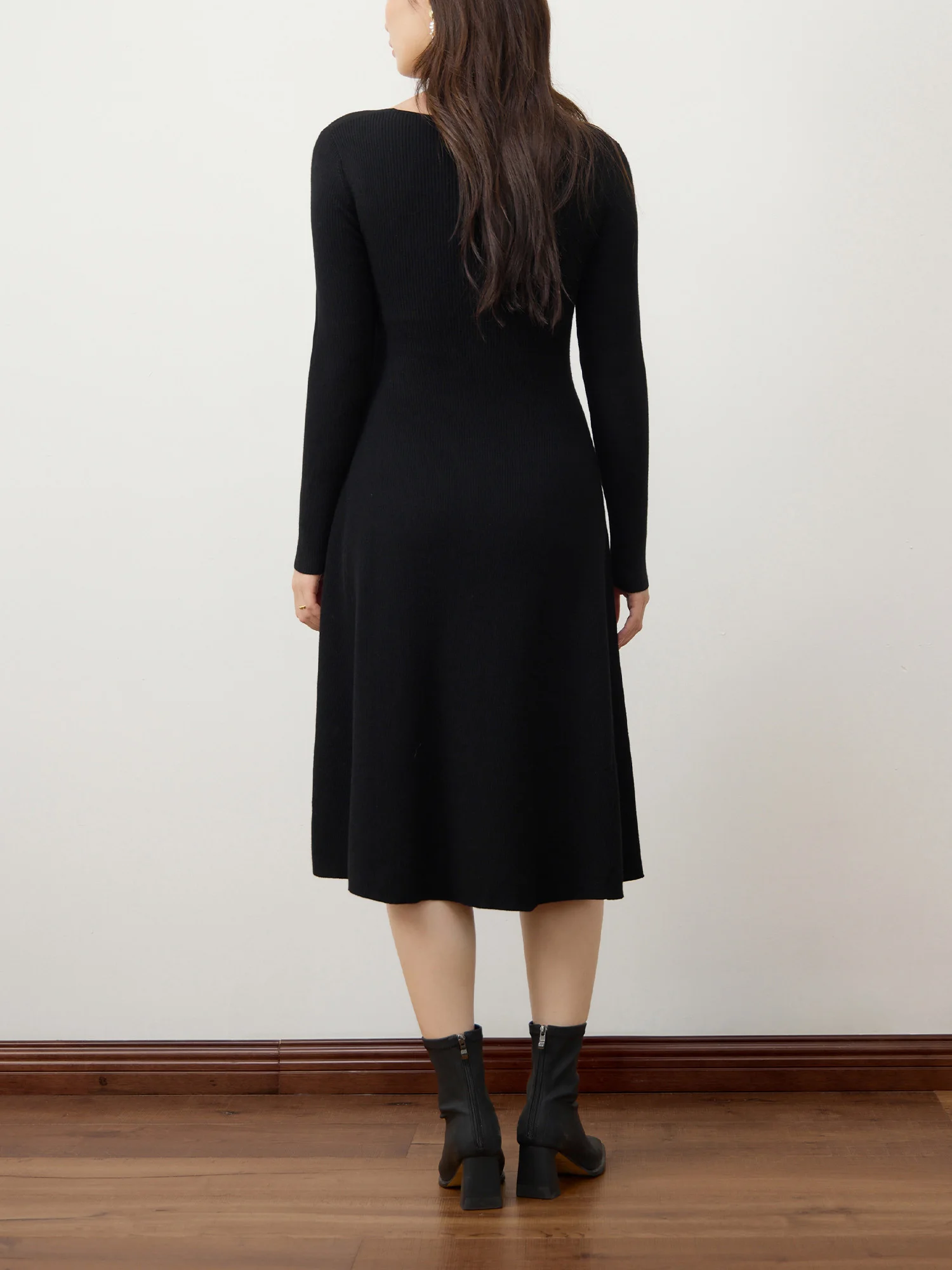 1 review for DUSHU 3% Wool Black Elegant Style Knit Dress For Women 2024 Winter New Design Black Hepburn Style Casual Long Dress 24DS84117