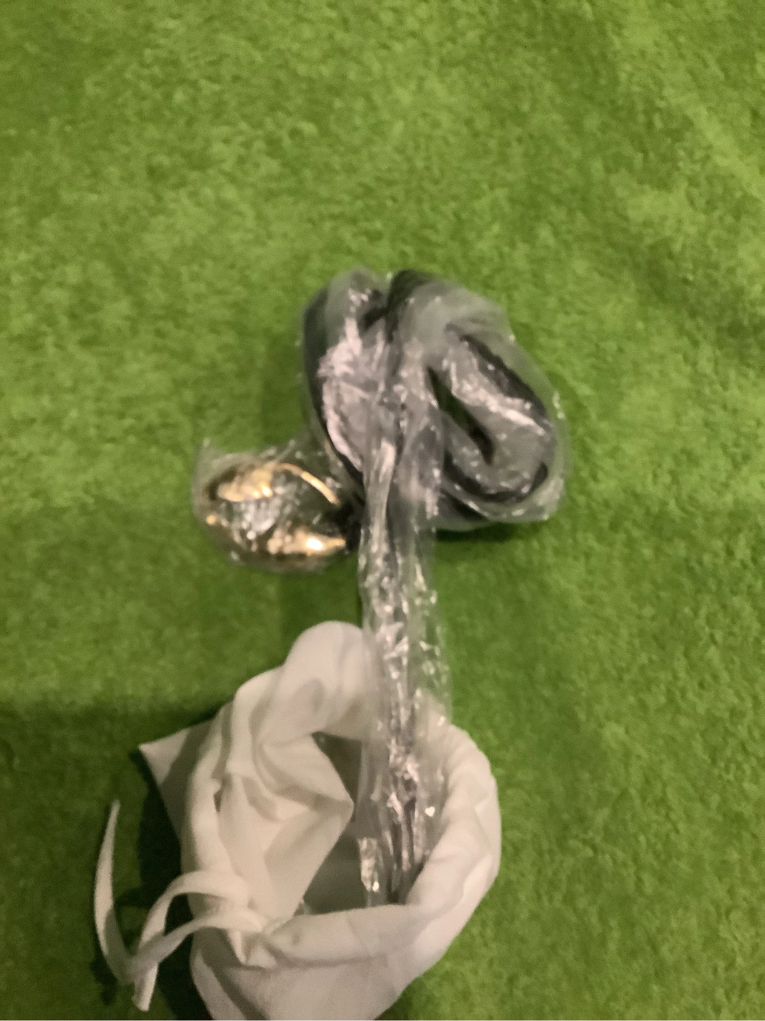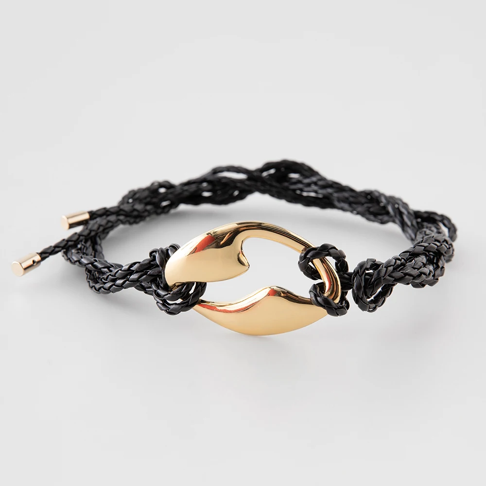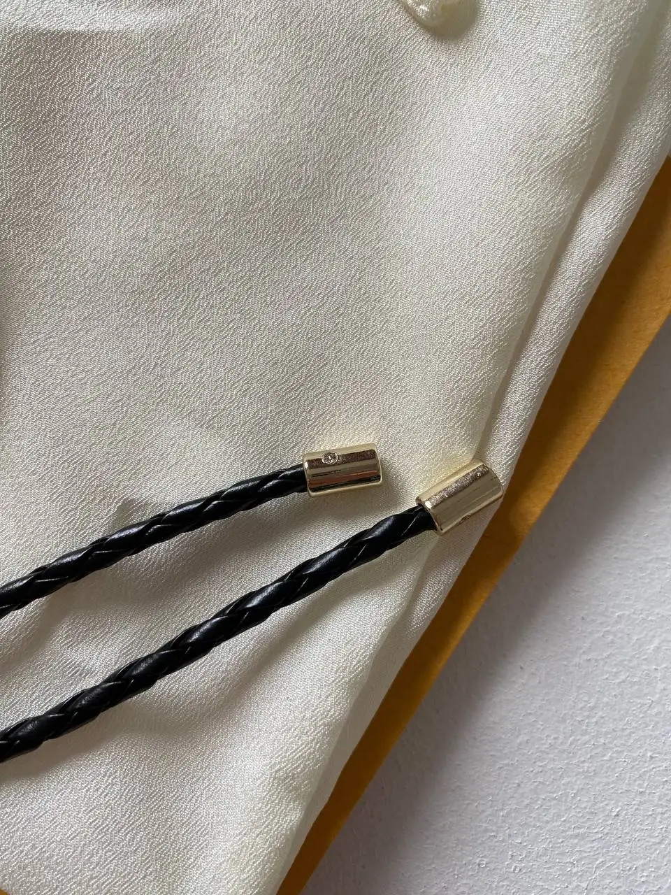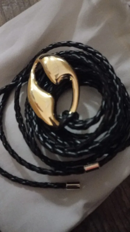 A tight buckle in a beautiful gold color, there are golden plugs on the ends that are bolted with bolts.