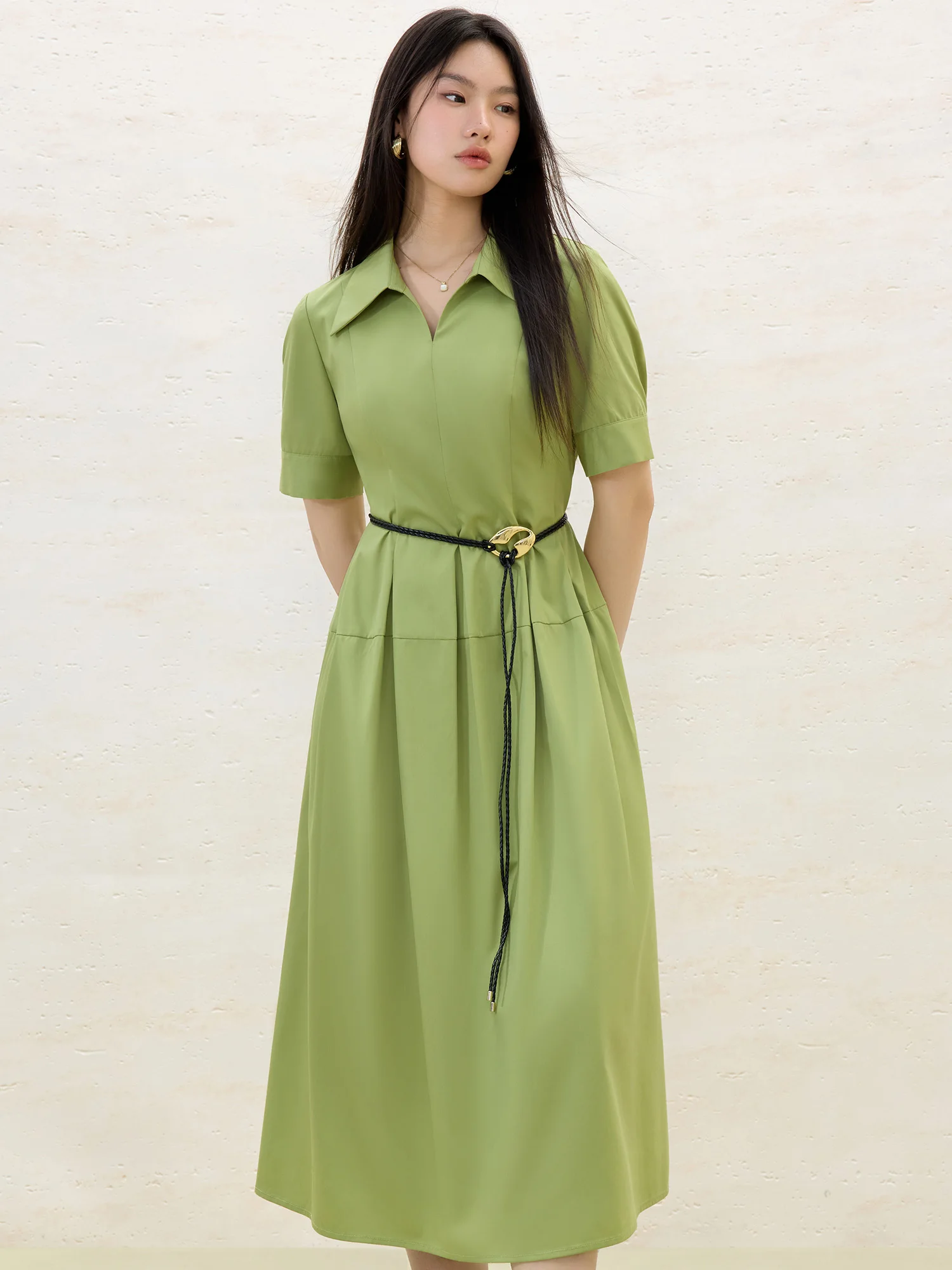 DUSHU Plus Size Dress 2025 Summer Metal Ring Detachable Belt Slimming Waist Chain Elegant Office Workwear Casual Chic 25DS82110