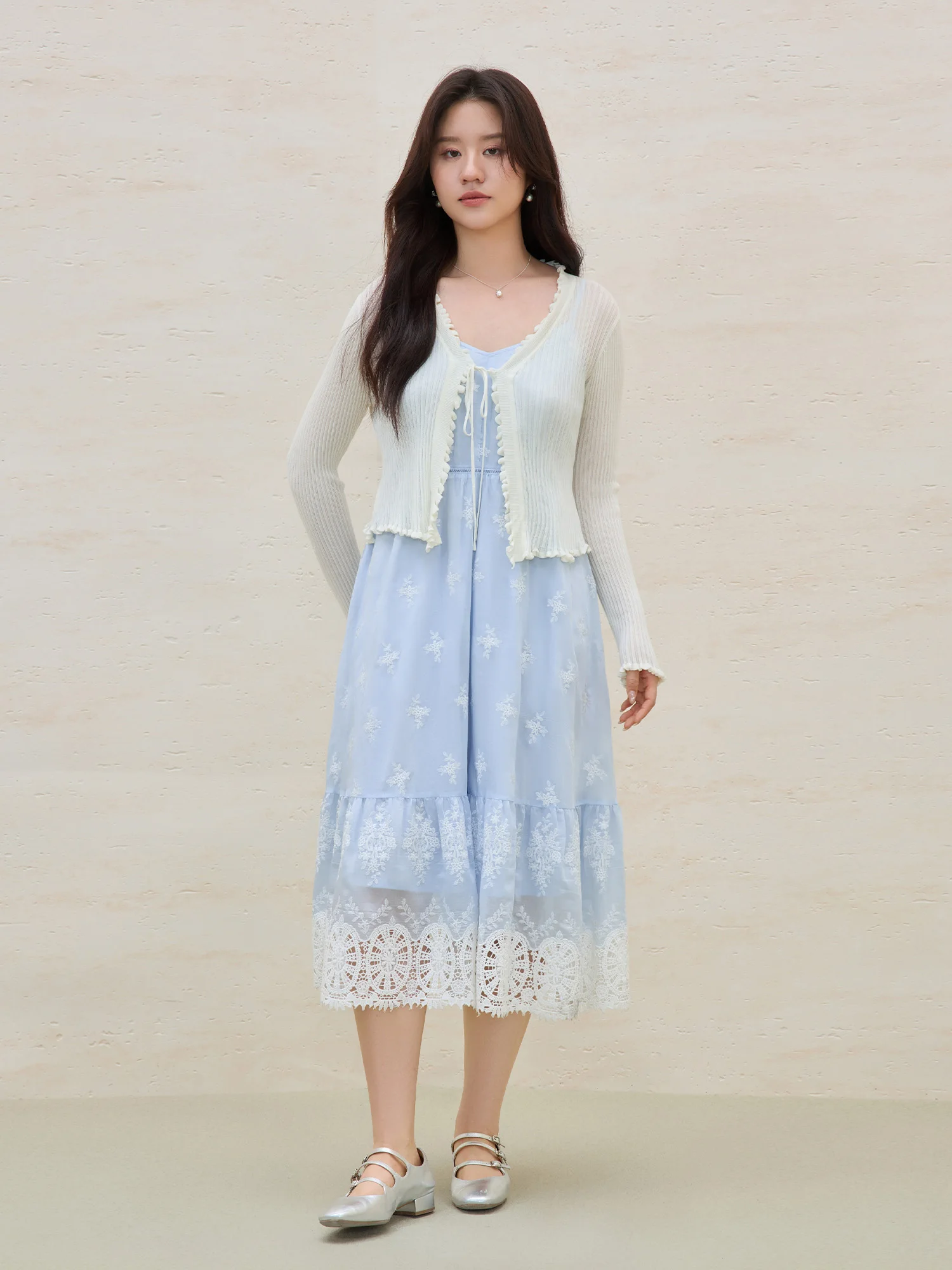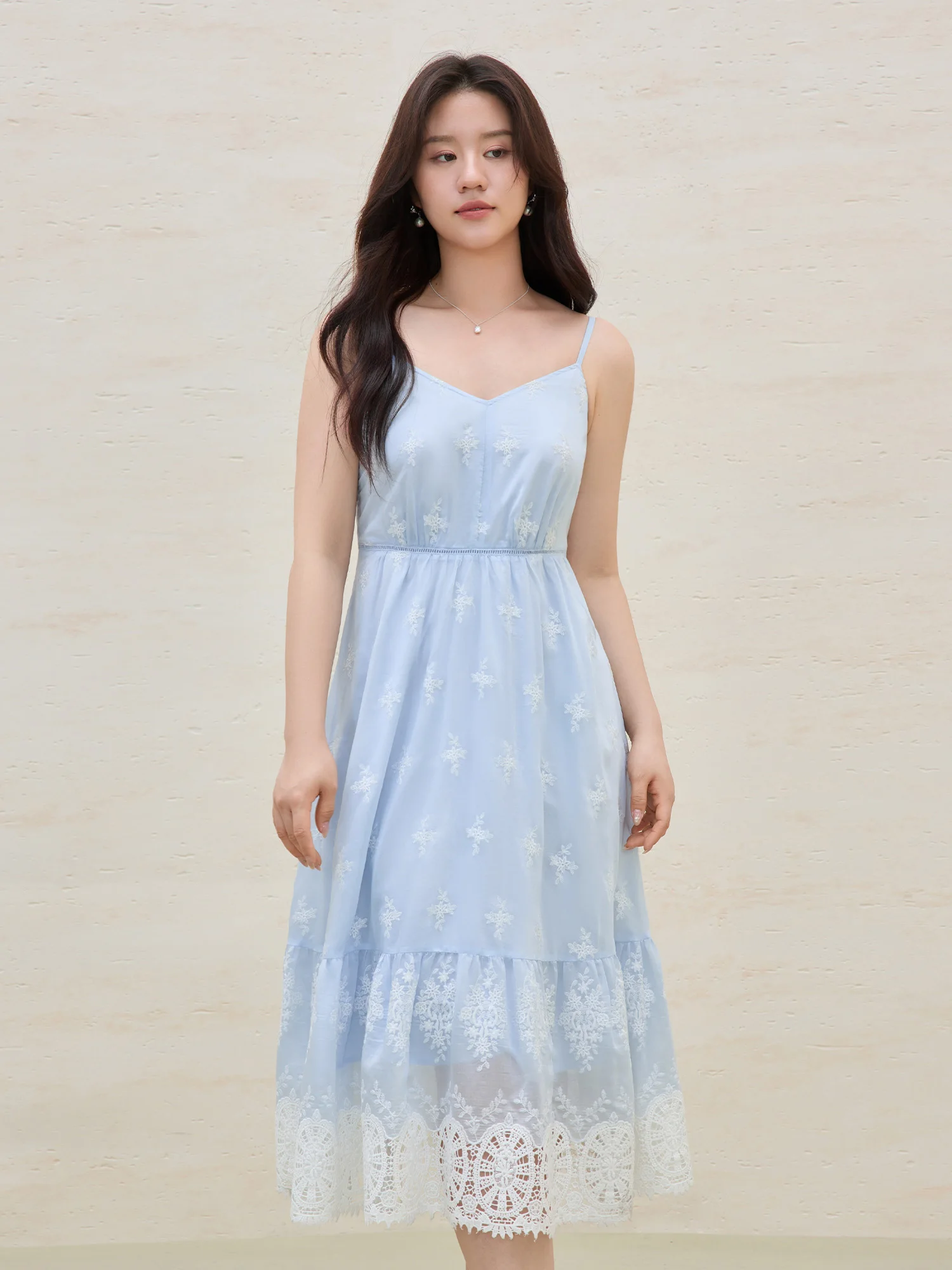 2 reviews for DUSHU Plus Size Holiday Season Seaside Hollow Embroidery Strappy Dress 2025 Summer New Arrival Embroidered Blue Dress 25DS82192