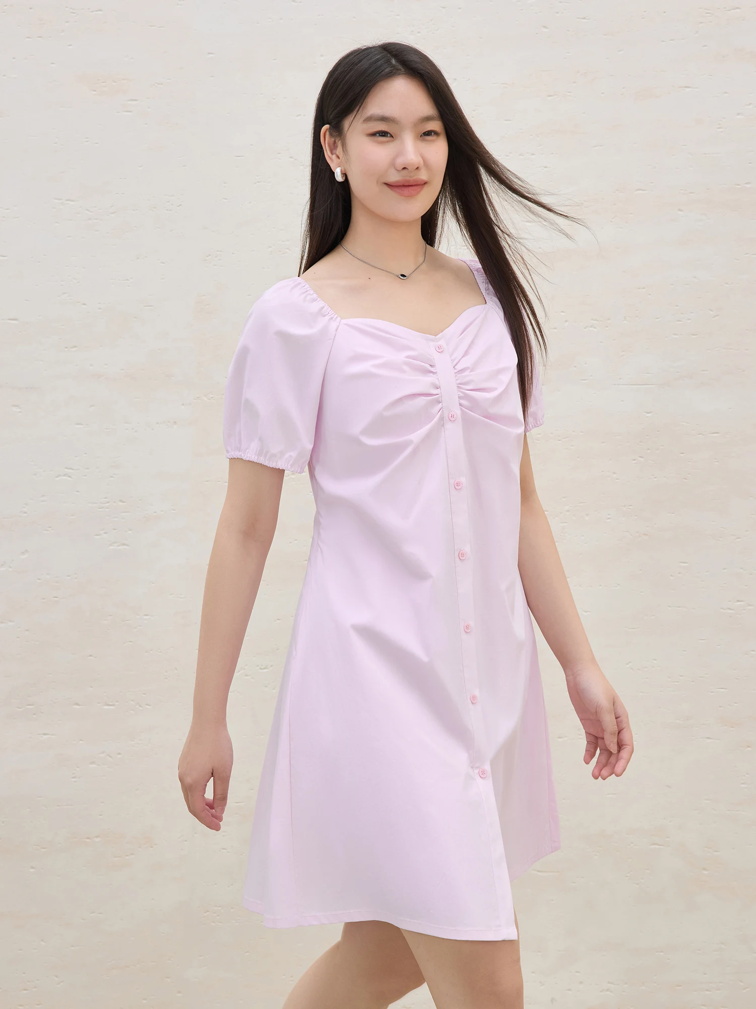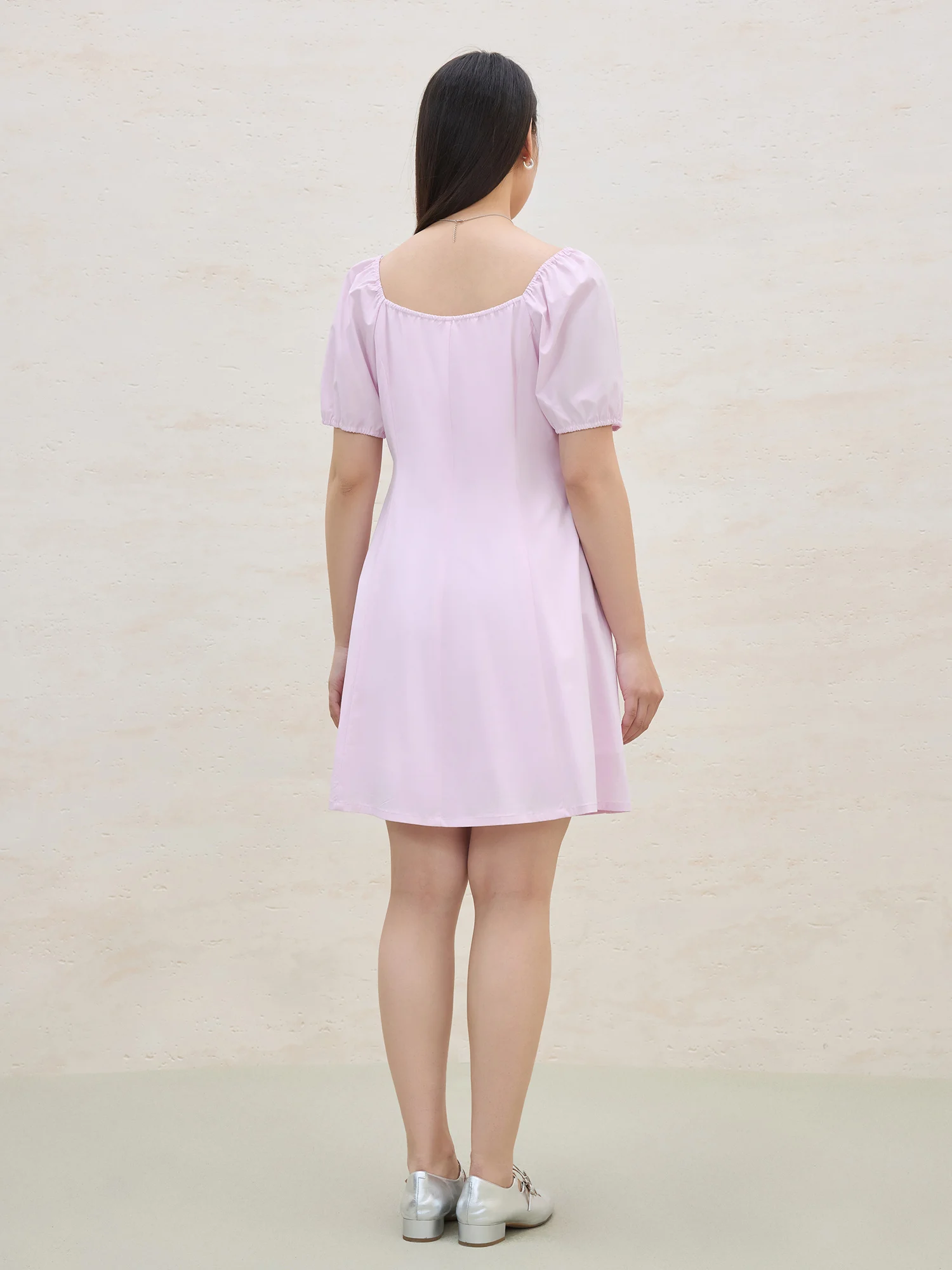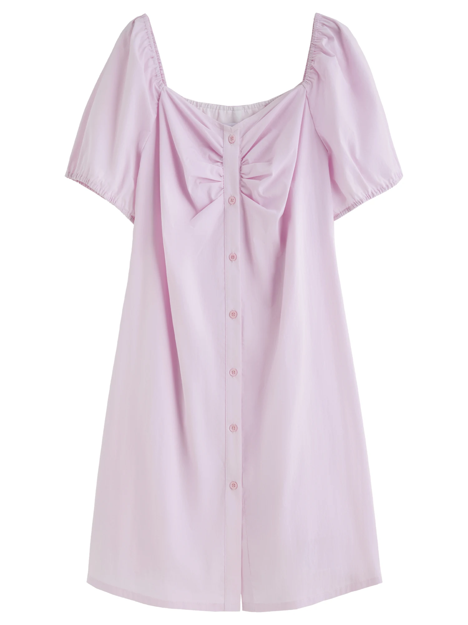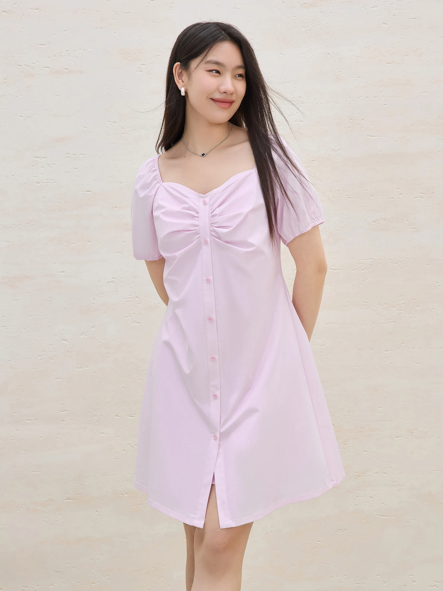 1 review for DUSHU Plus Size Women Gentle Fresh Puff Sleeve Dress 2025 Summer New Arrival Short French Style Holiday Dress 25DS82305