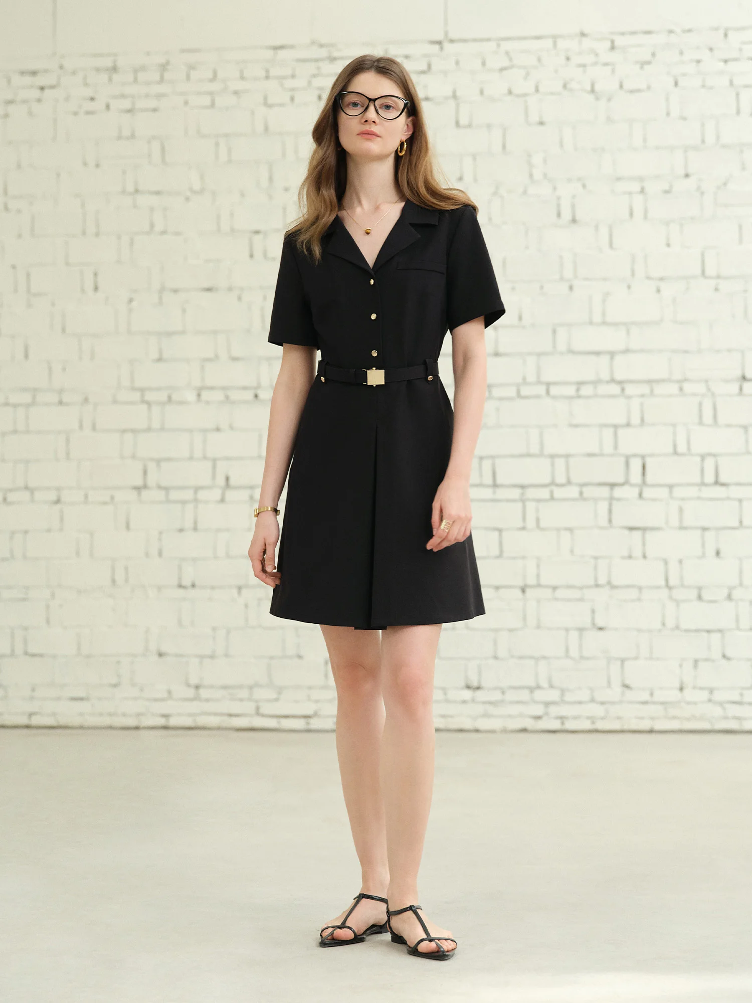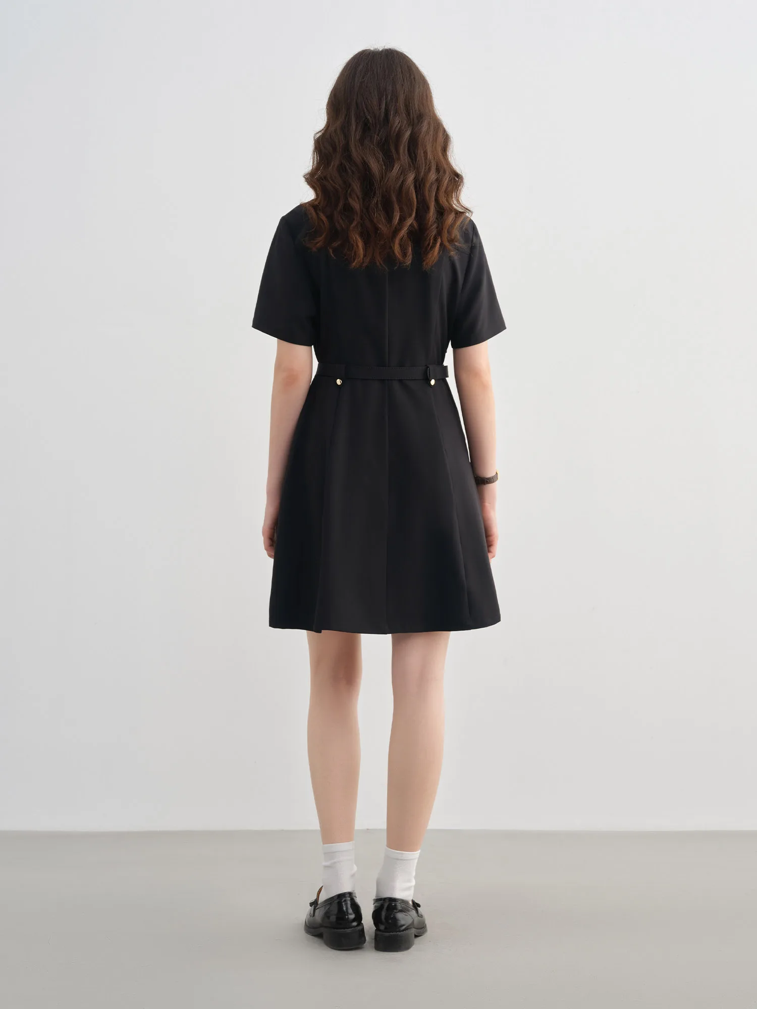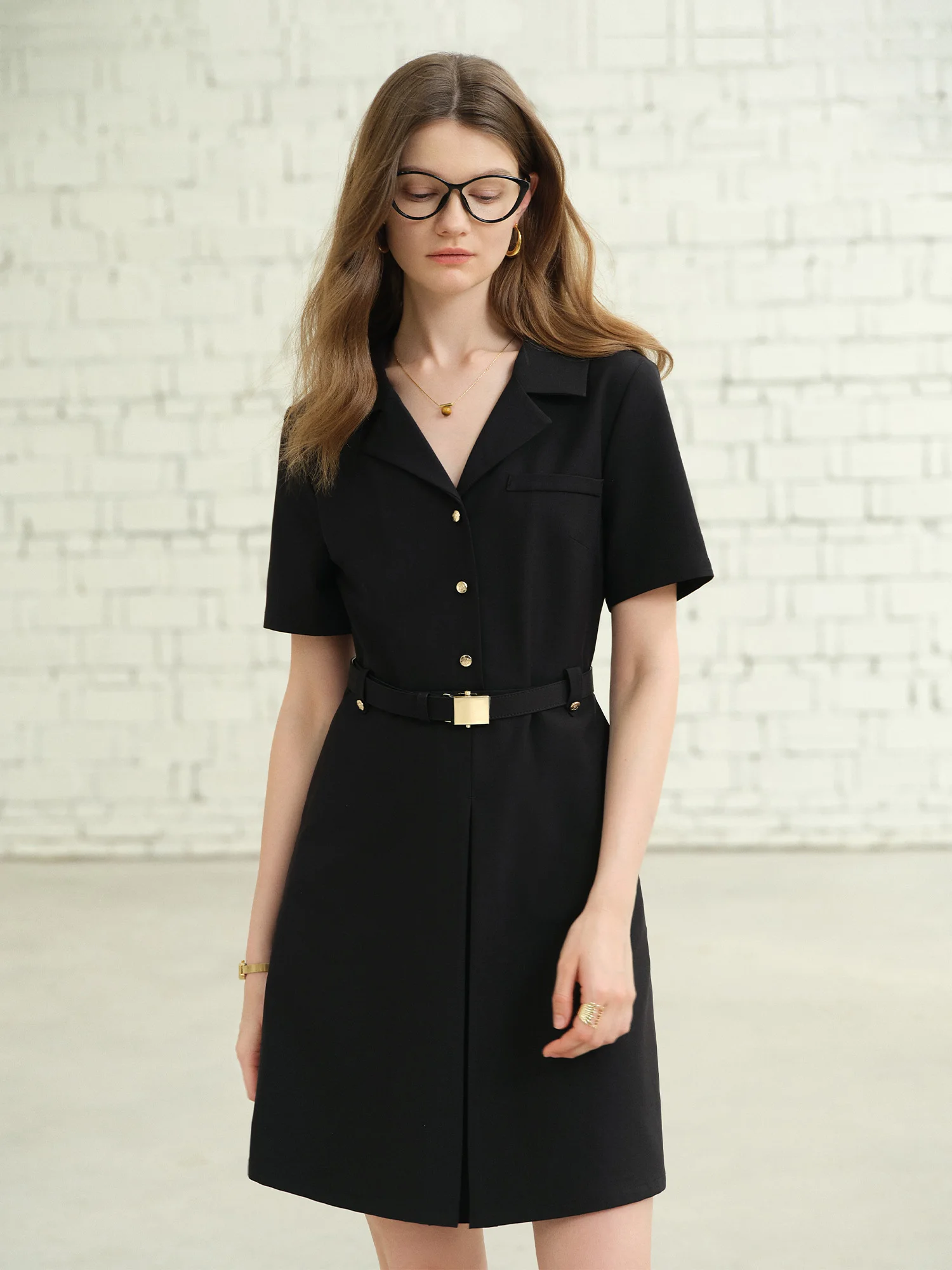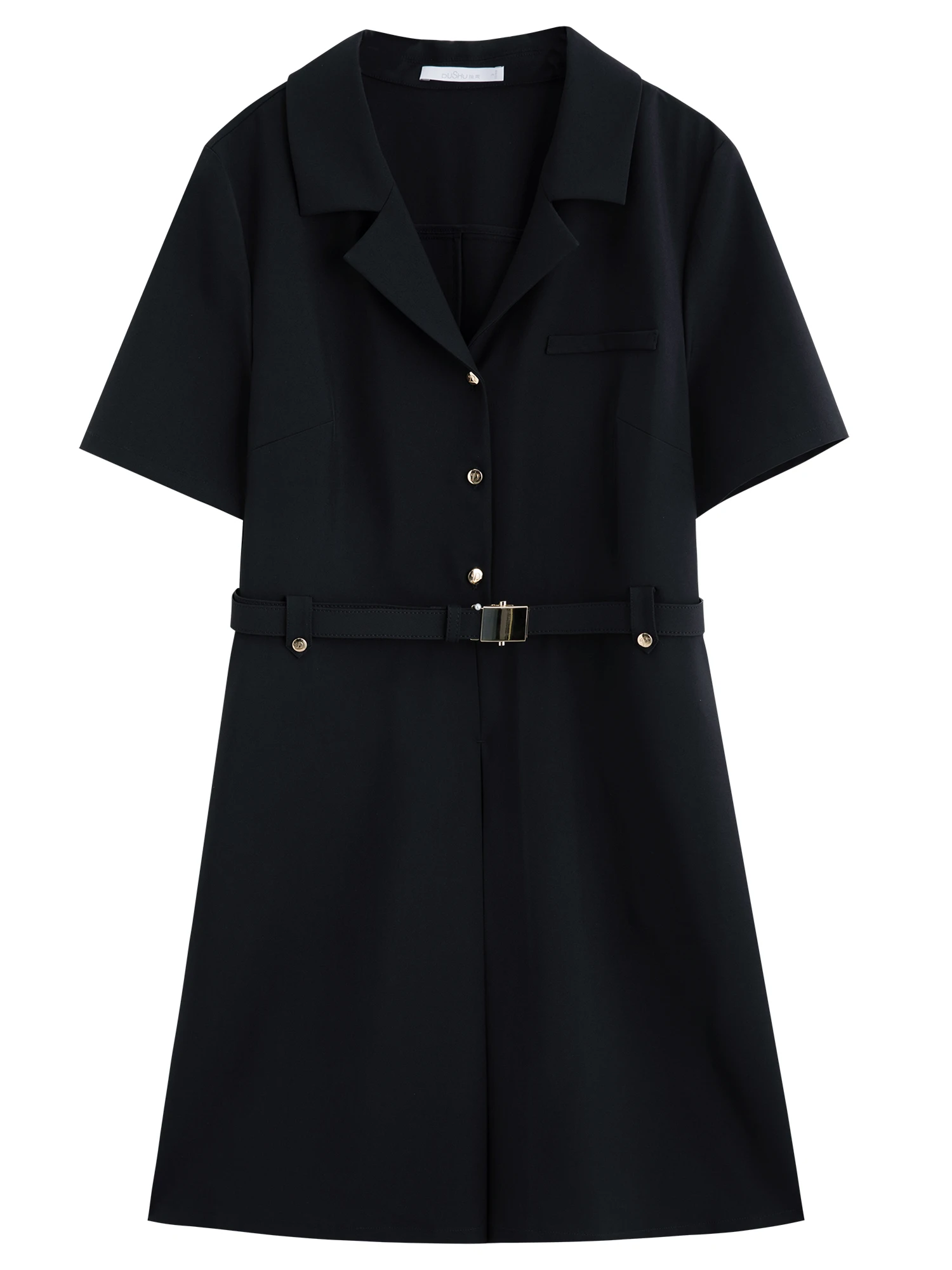 DUSHU Plus-Size Women’s Hepburn-Inspired Mid-Length Smart Urban Suit Dress – 2025 Summer New Collection Black Dress 25DS82163