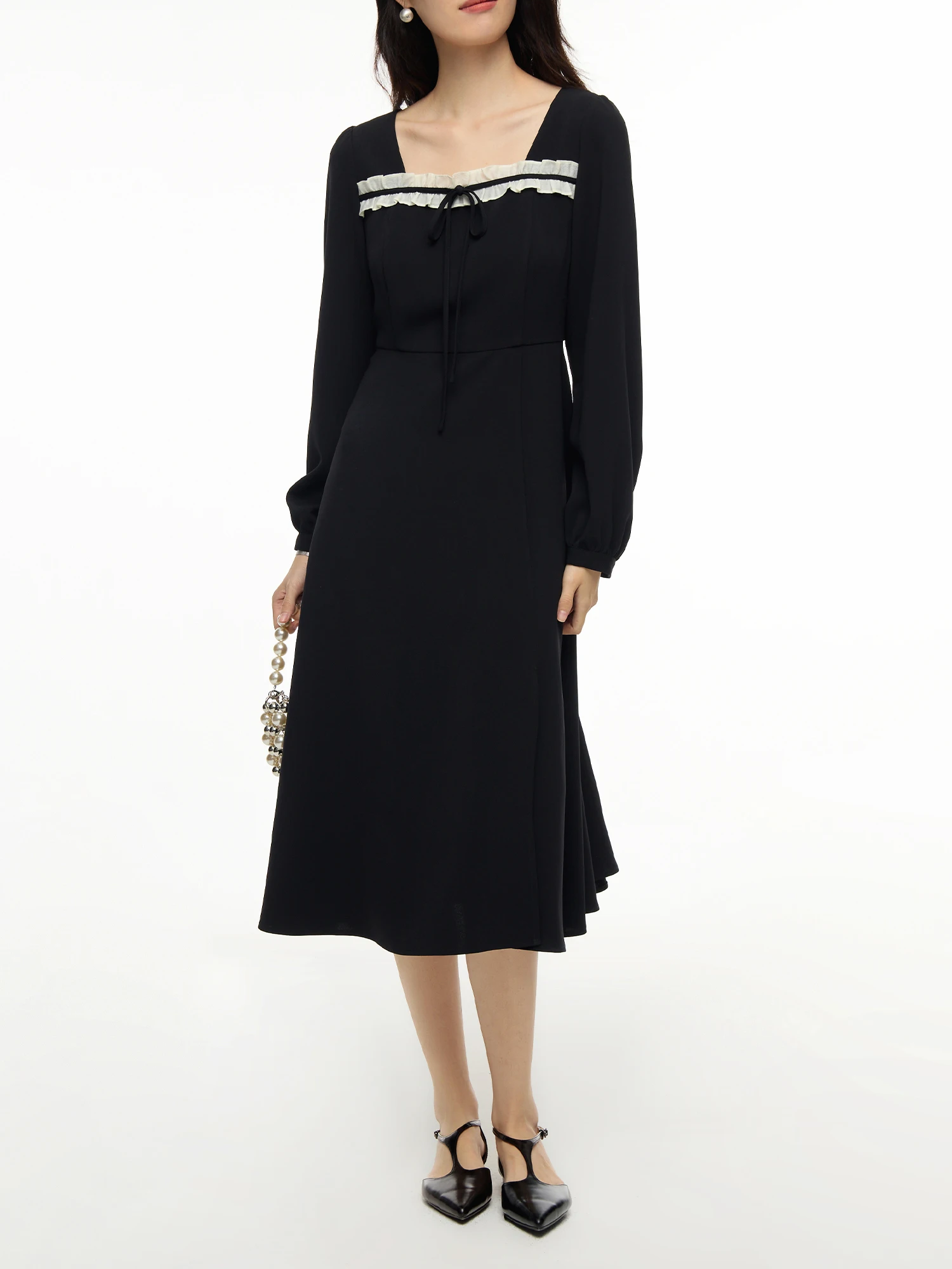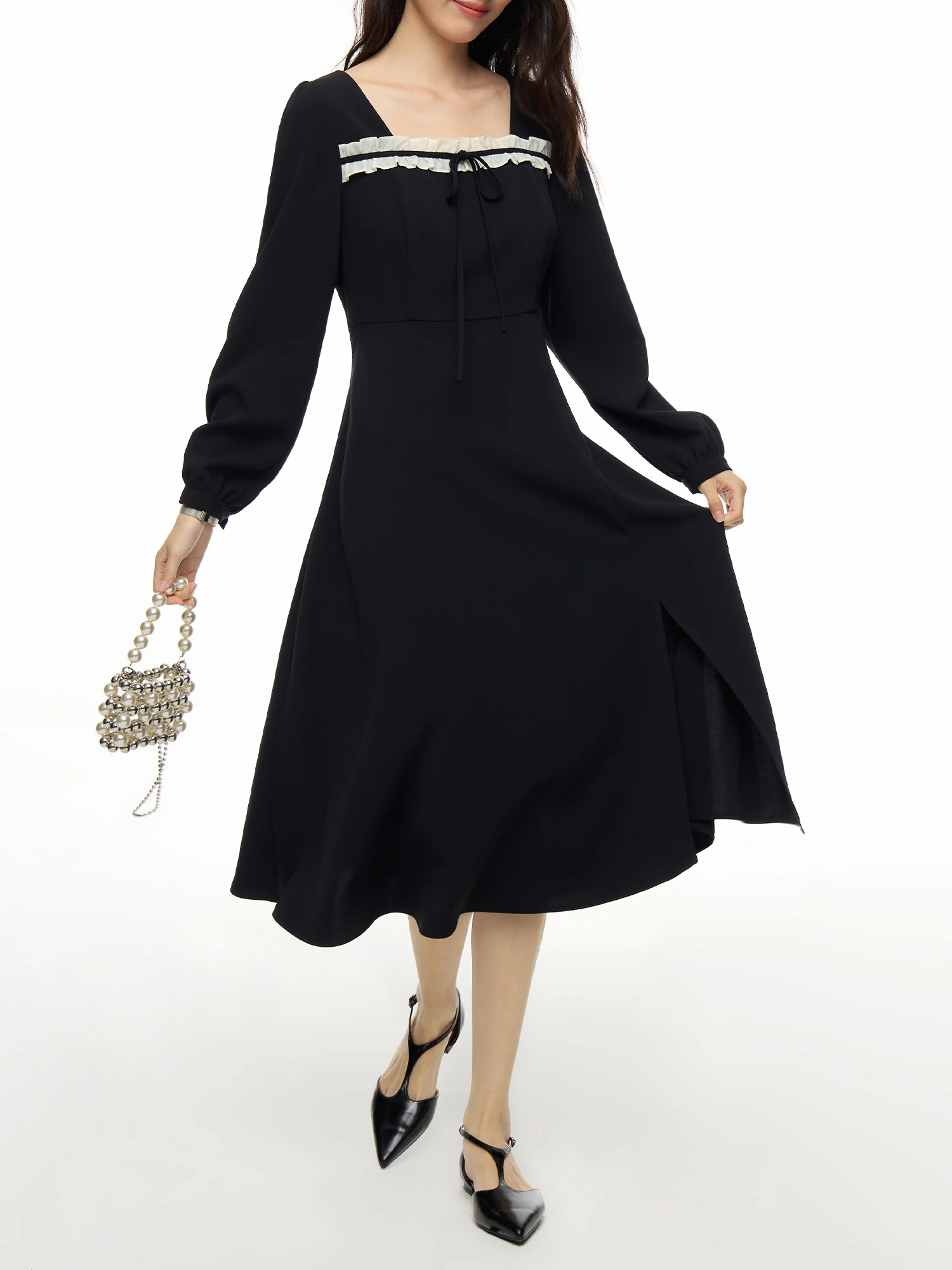 DUSHU Women’s Autumn Outfit New Style Sweet French Square Collar Dress Slimming Versatile Women Dress Casual 24DS83330
