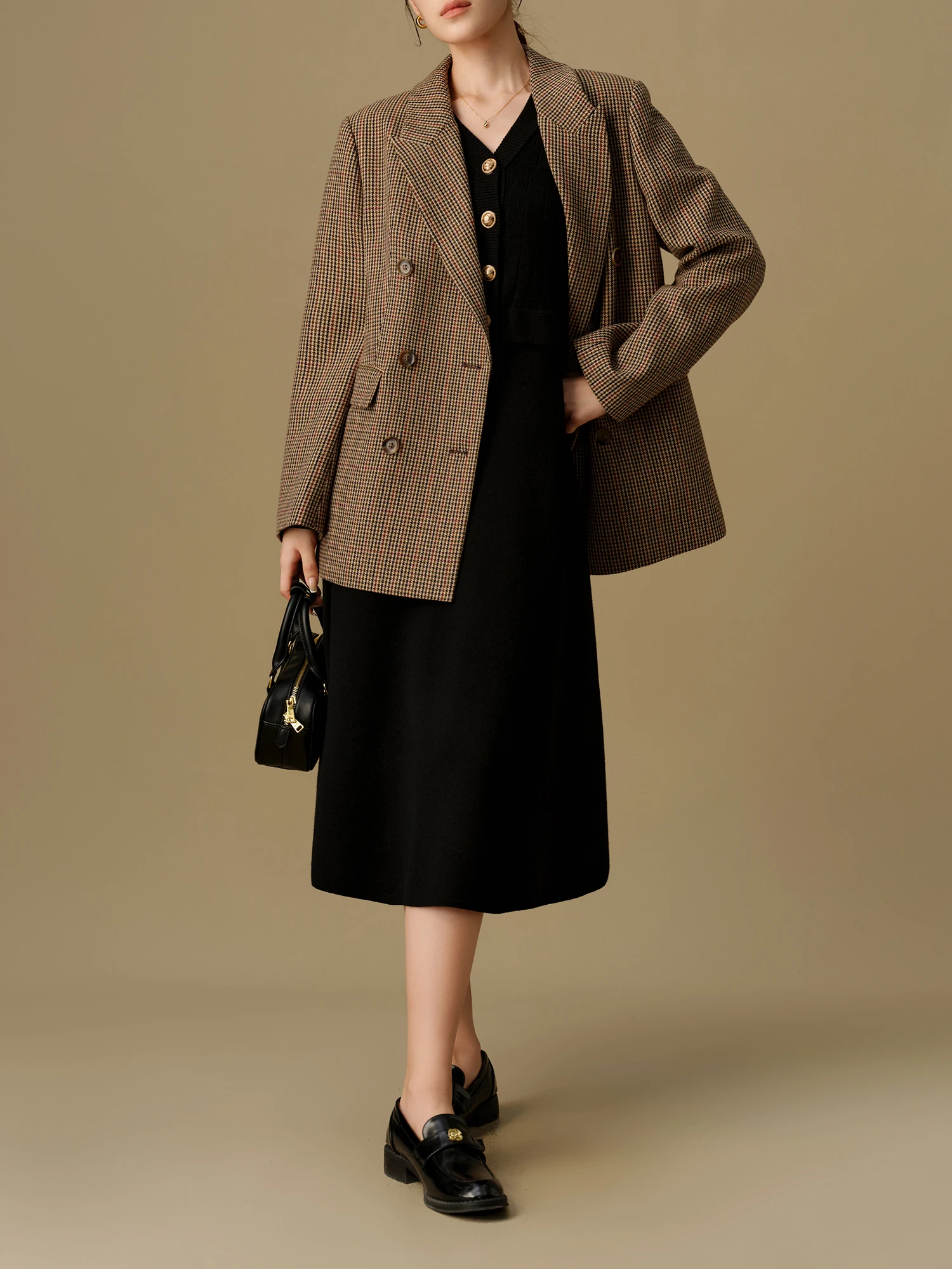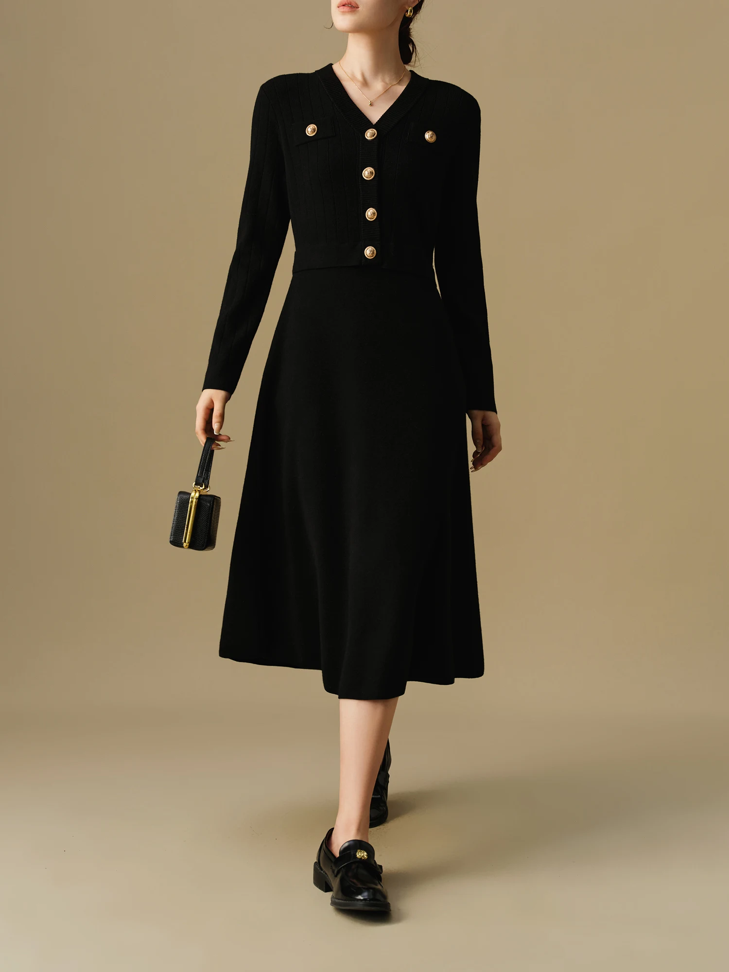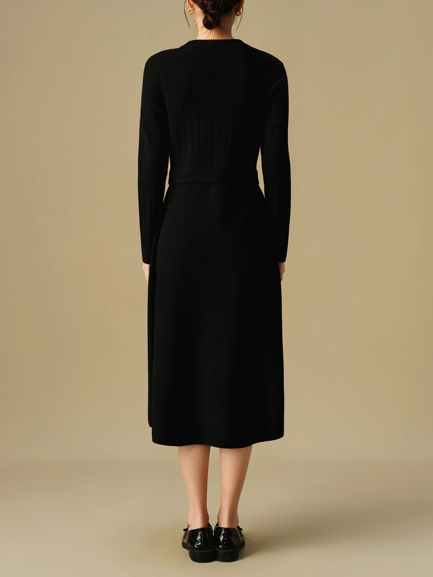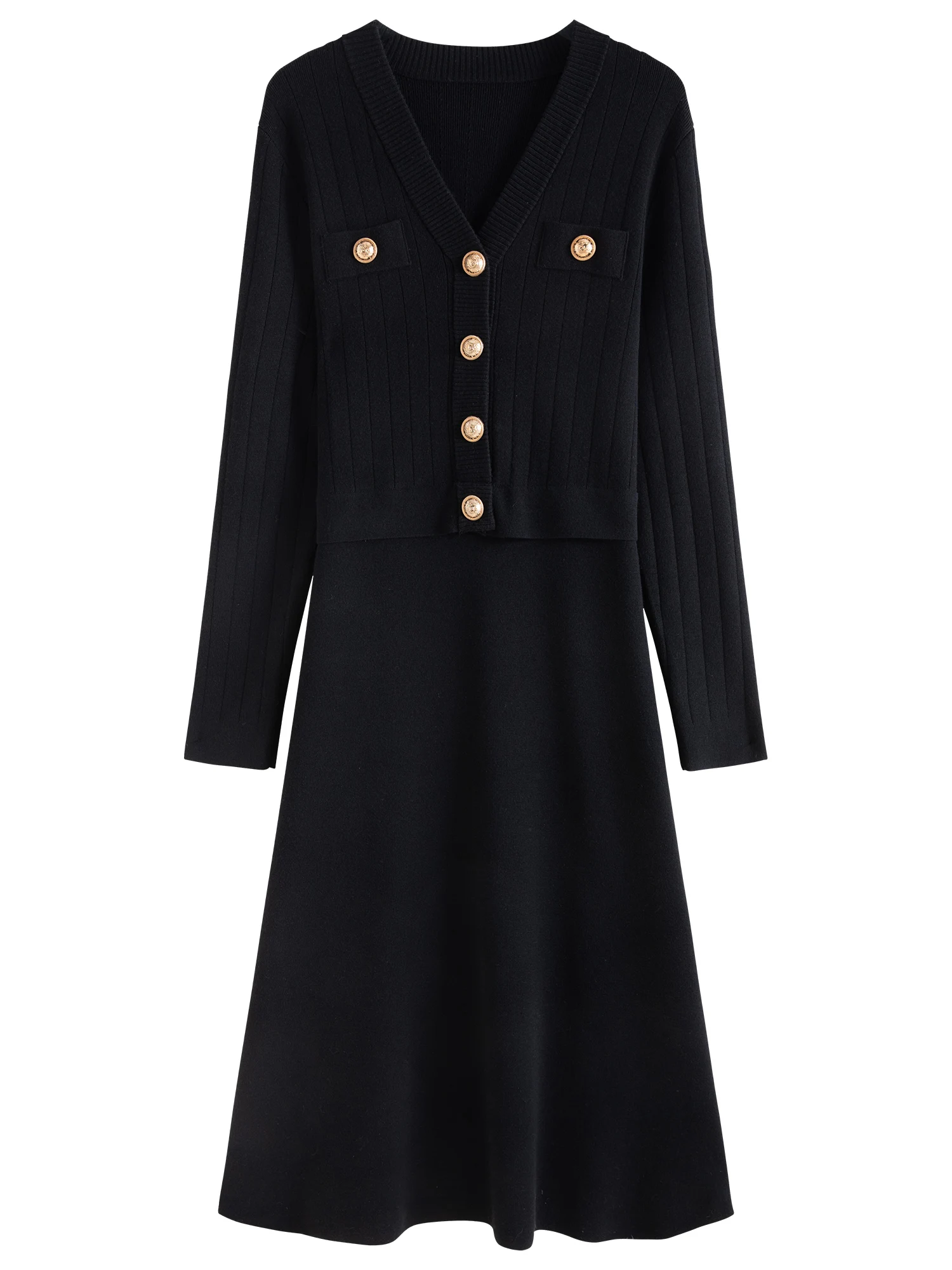 DUSHU Women’s Fake Two-piece Knitted Long Dress 2024 Winter New Product Commuting Medium Long Dress for Women 24DS84154