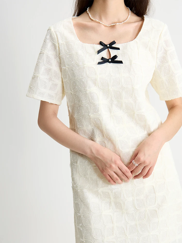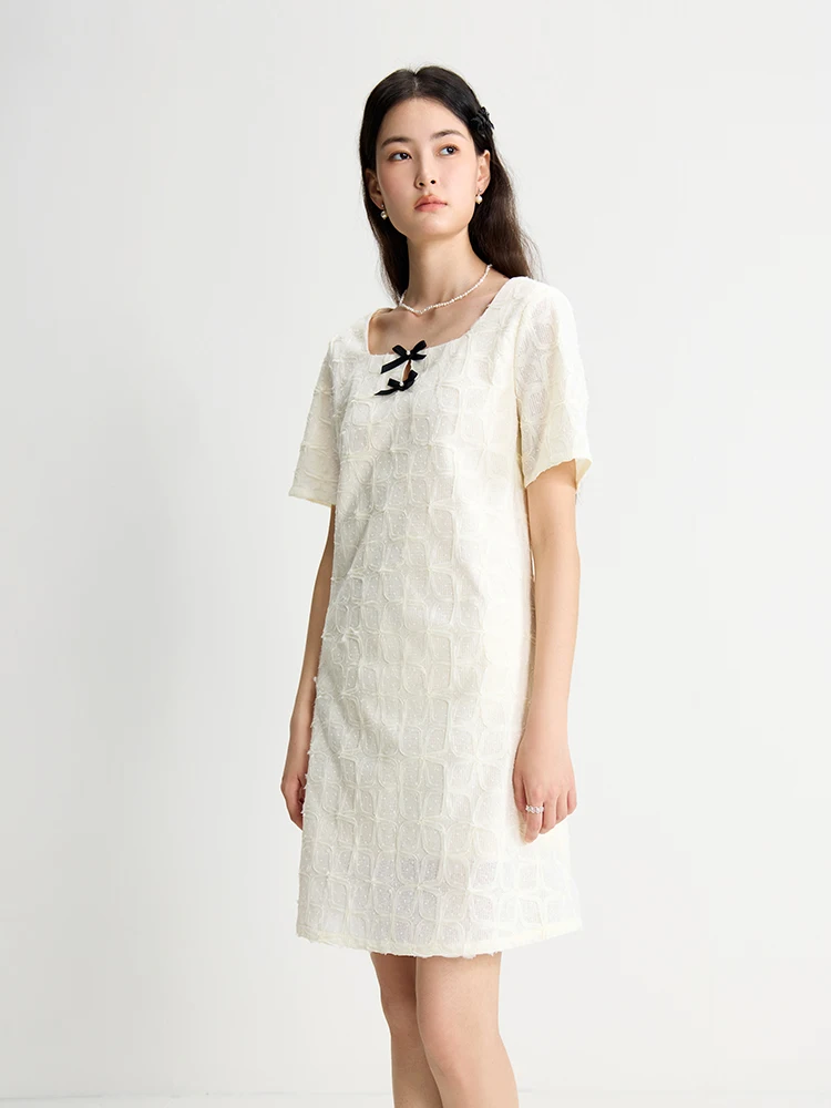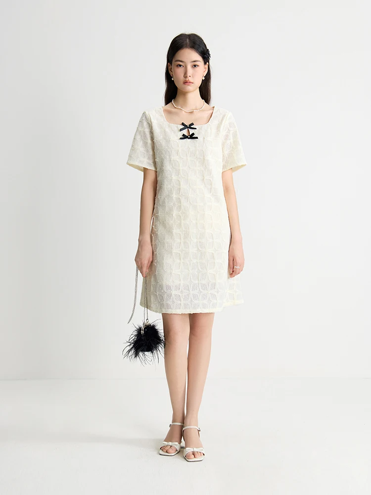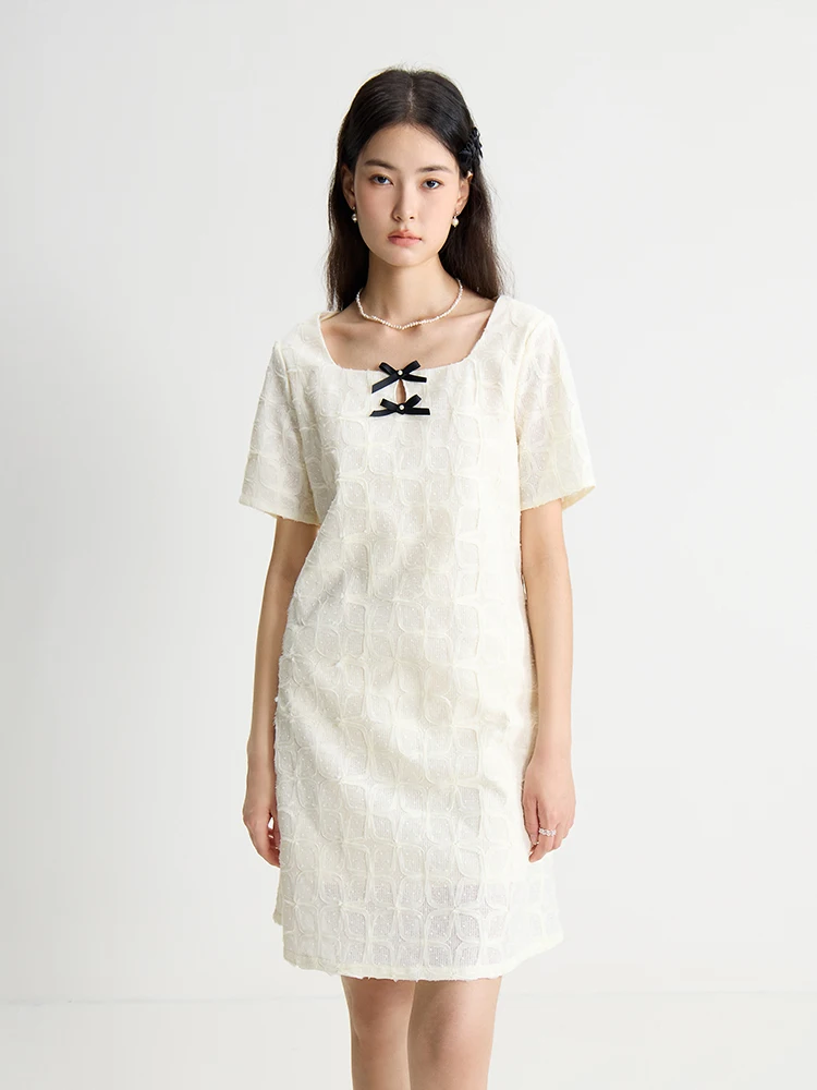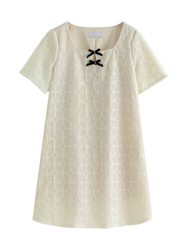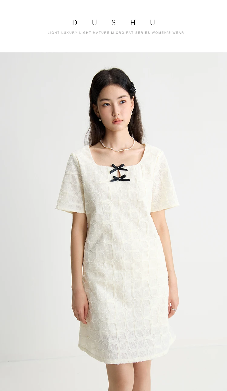 DUSHU Women’s Sweet Style Bow Collar Short Dress 2024 Summer New Design Versatile Casual Gentle Dress For Female 24DS82786
