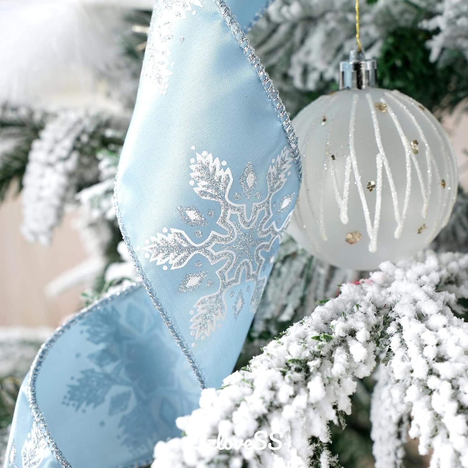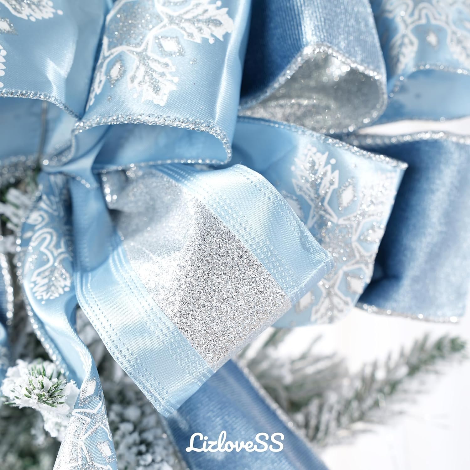 🎁Festive Pattern: Featuring classic holiday designs in dusty blue and silver, these bows are adorned with glittery snowflake and metallic striped patterns, adding an extra touch of festive fun to your decorations