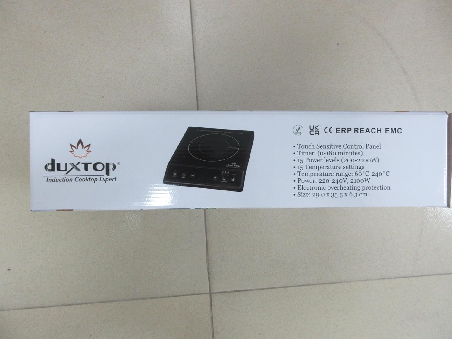 PORTABLE INDUCTION BURNER Duxtop induction cooktop uses 120 V 15 amp electrical outlet–standard in all North American homes. ETL listed and built to North American electrical standards. Lightweight induction cooktop makes handling and storage easy