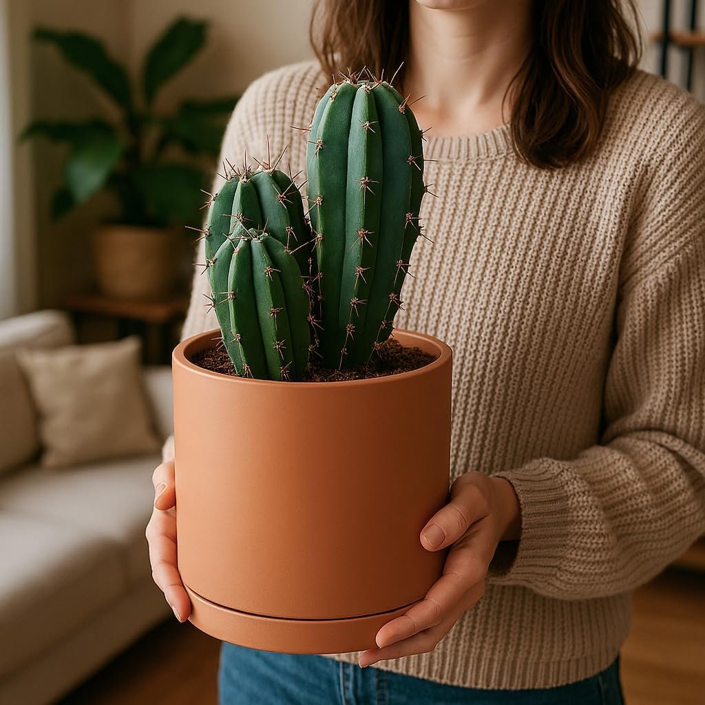 Customers appreciate the planter’s minimalist design and terra cotta construction, noting it’s well-suited for small cactus plants and comes with a felt pad for floor protection. The pot includes a screen for the drainage hole, and one customer mentions the inside diameter is roughly a foot. While some find it well worth the price, others consider it pricey, and customers disagree on whether it’s lightweight or heavy. There are mixed experiences with sturdiness, with some reporting random surface cracks.