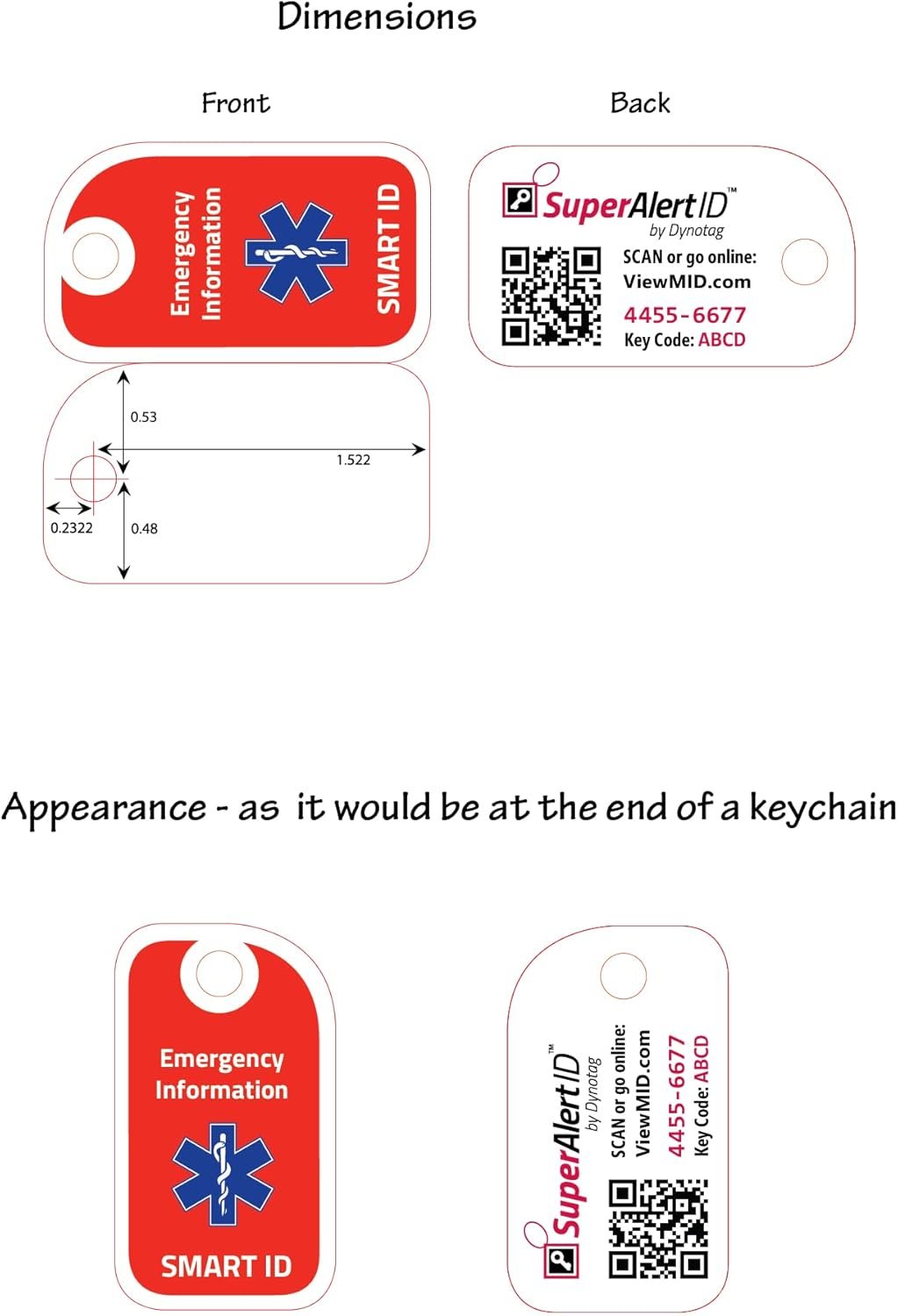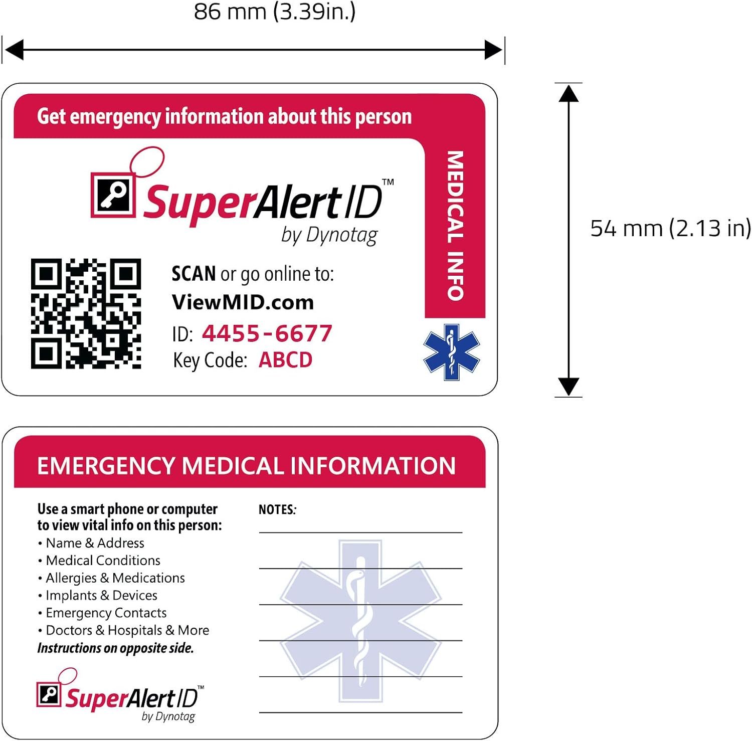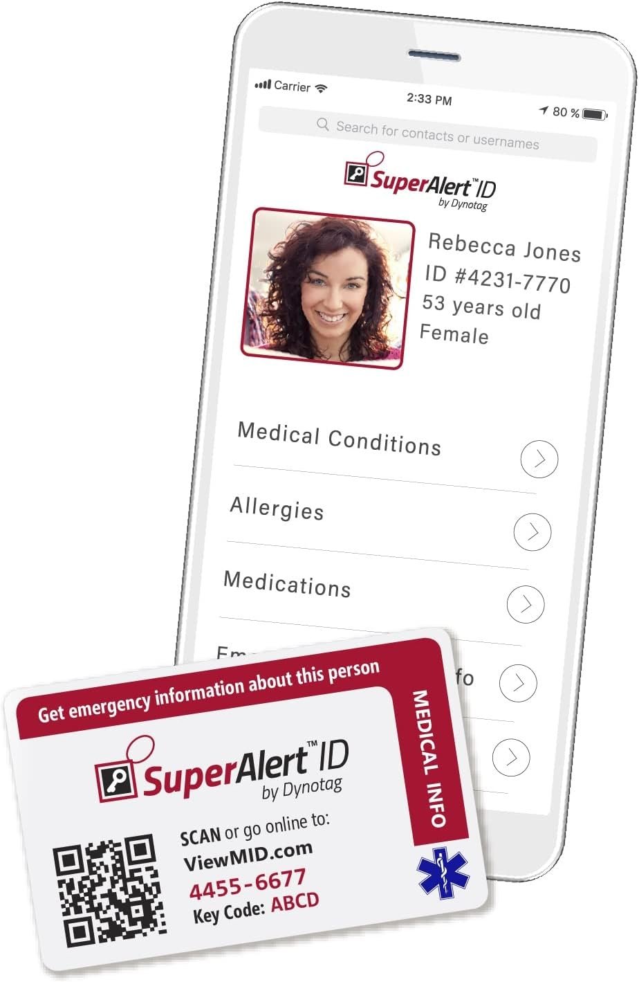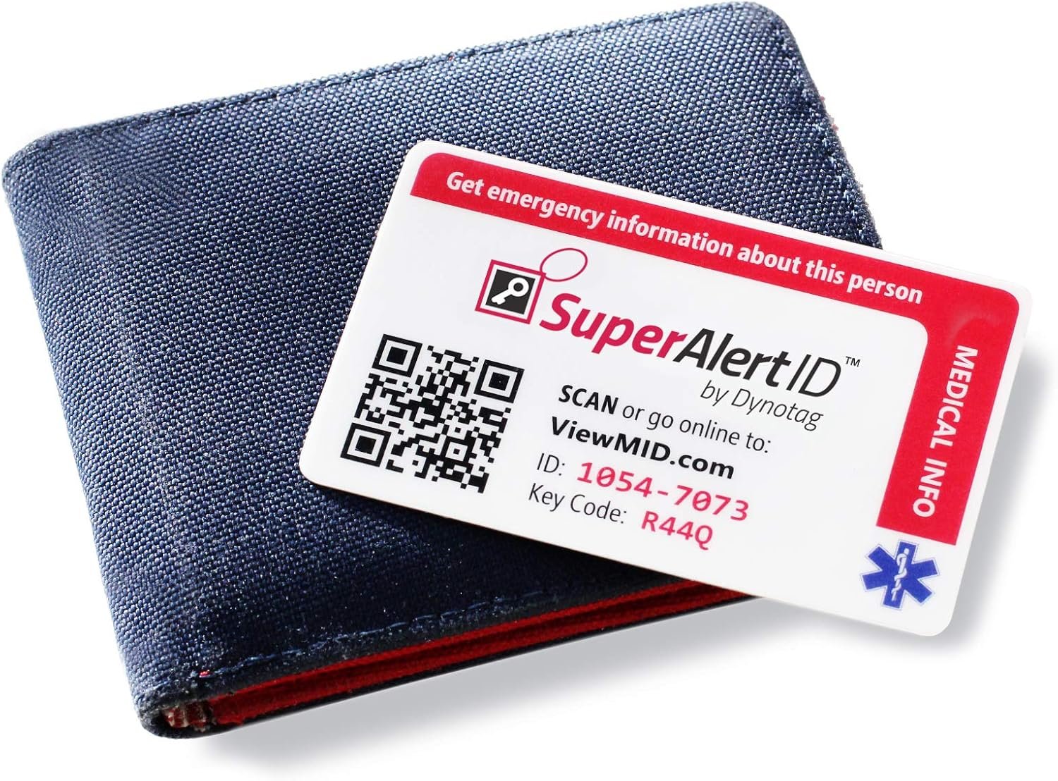 Dynotag SuperAlert™ Smart Medical ID with Detailed Online Profile; Wallet and Keychain Card kit with Lifetime Subscription