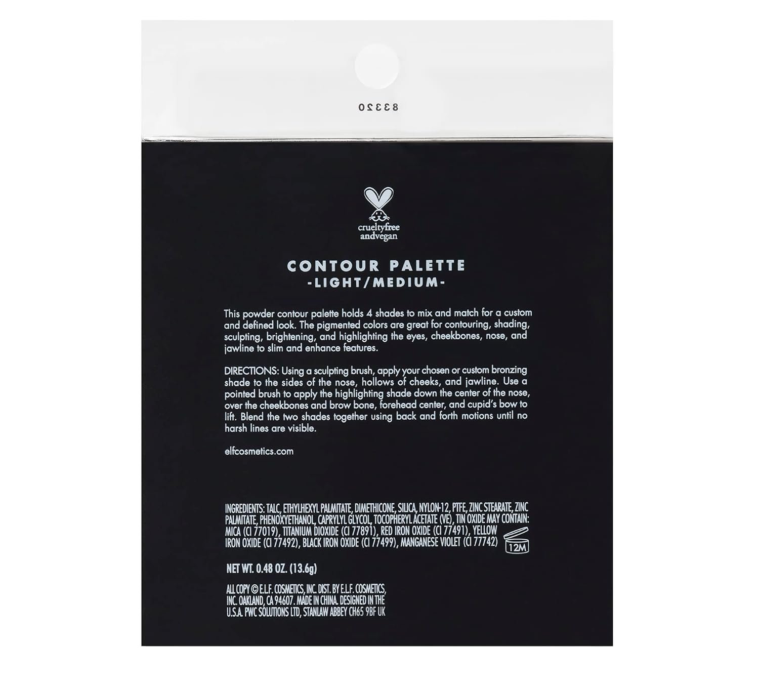 e.l.f. Contour Palette, 4 Shades, Customizable, Easy to Apply, Sculpts, Shades, Brightens, Light/Medium, Infused with Vitamin E, All-Day Wear, 0.56 Oz