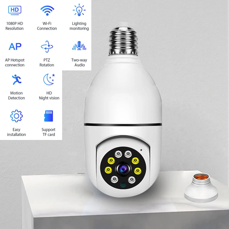 6 reviews for E27 Bulb Camera Smart Home Human Motion Detect Color Night Vision Surveillance Camera APP