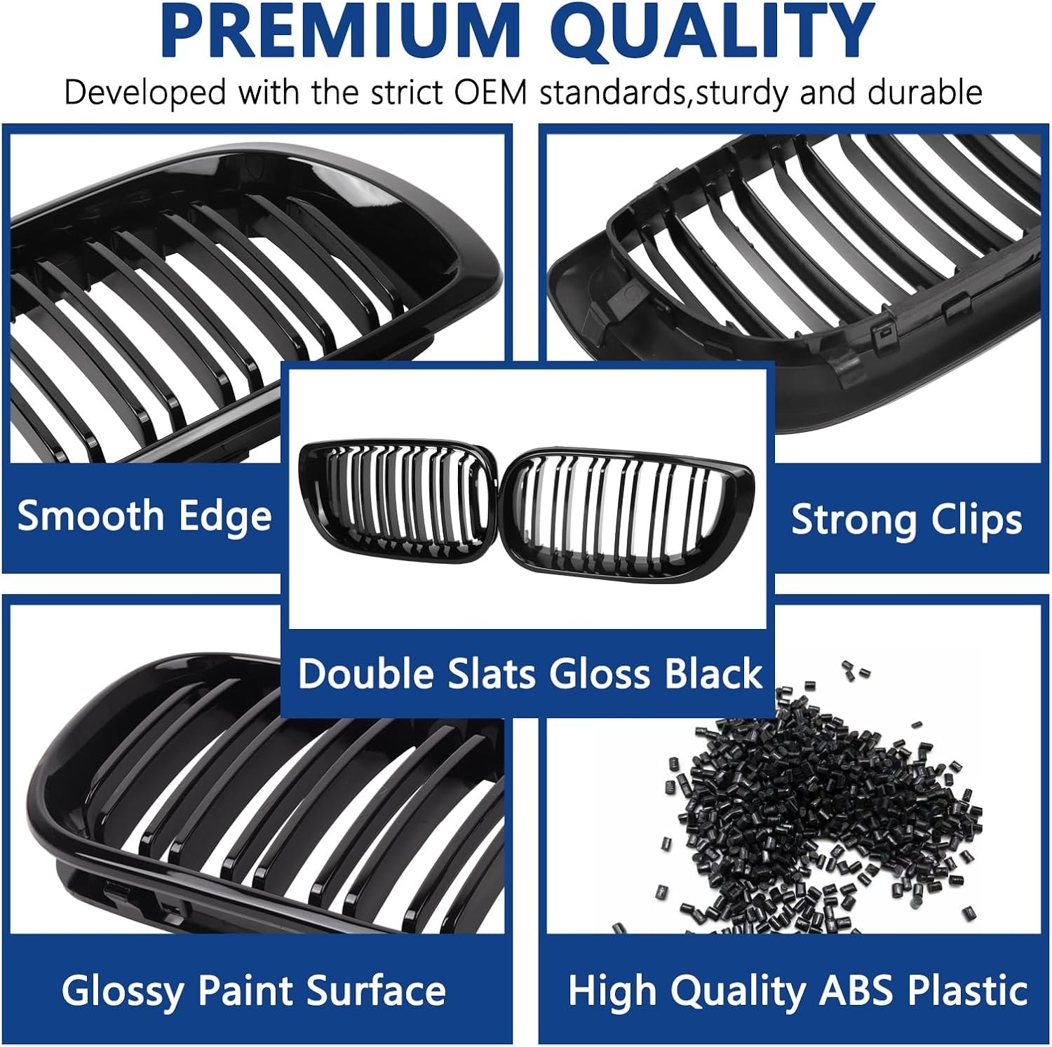 E46 Grille, Front Kidney Grill Compatible with BMW 3 Series 2002-2005 E46 4-Door 320i 325i 325xi 330i 330xi Double Slats Gloss Black Grill