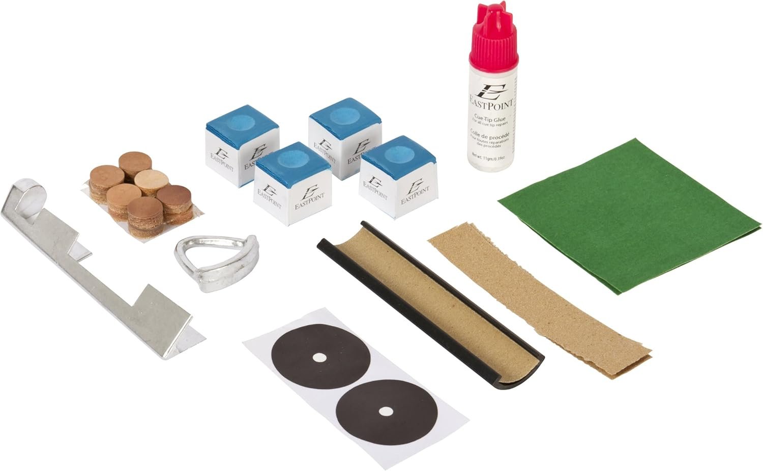 1 tube of cue tip cement-14g, 1 metal clamp, 3 pcs of sandpaper