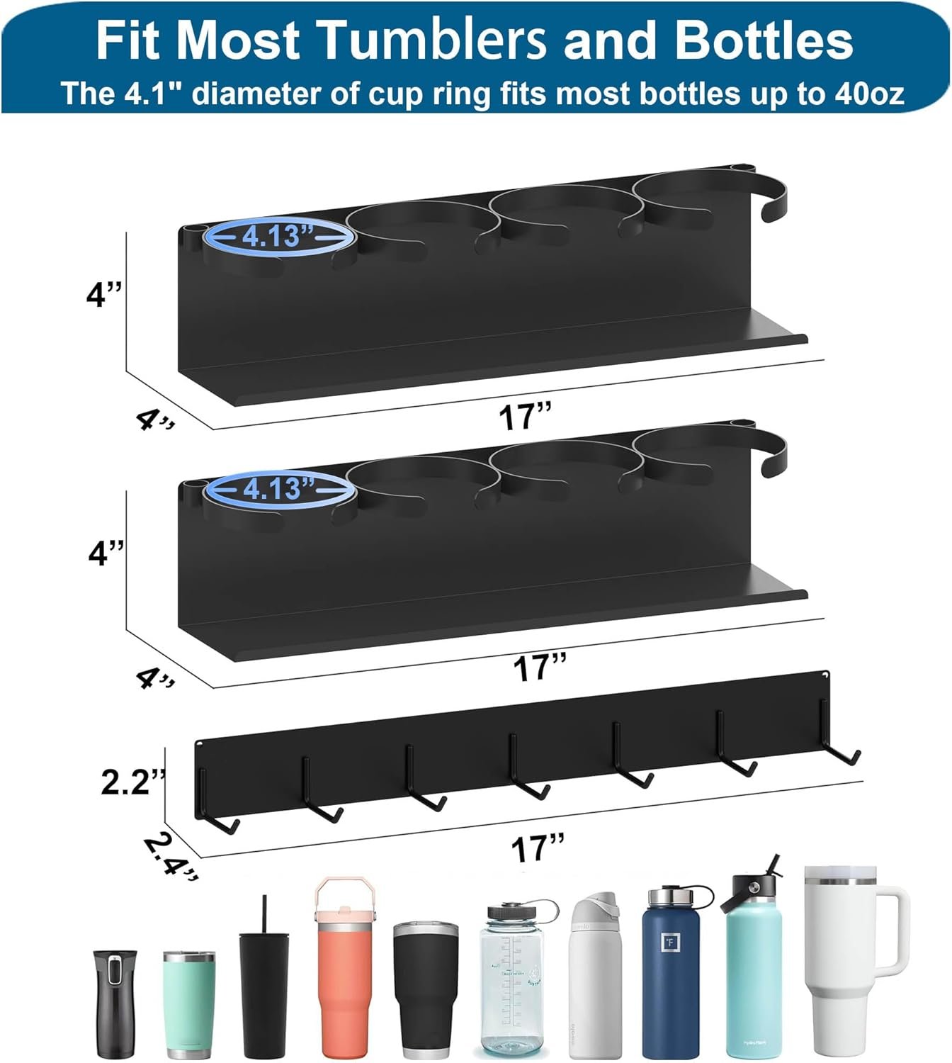 Perfect Fit for Tumblers,Cups,Bottle – fits most cups and bottles up to 40oz,and also compatible with Hydro Flask, Yeti, and under 4.13” diameter drinkware.Magnetic holder securely grips the base of your tumbler.