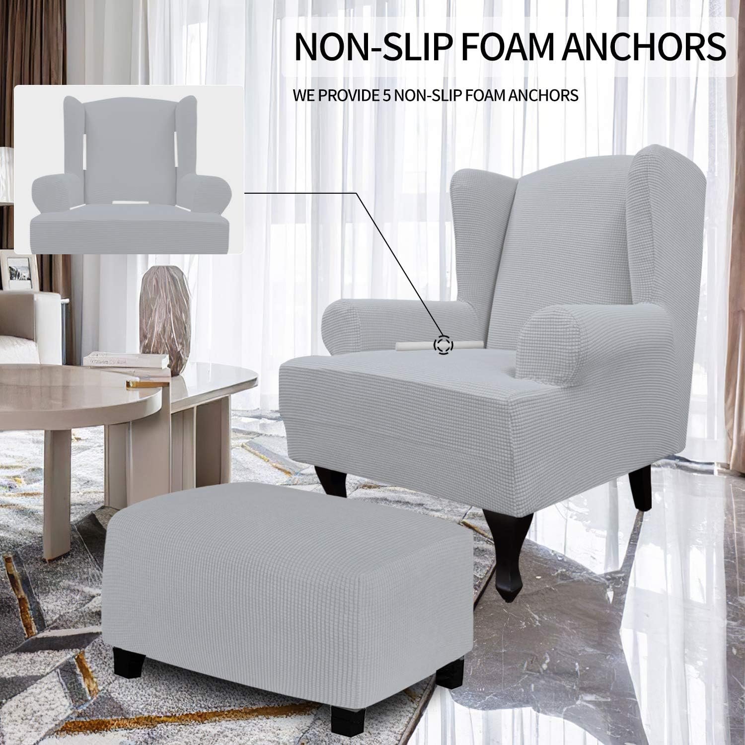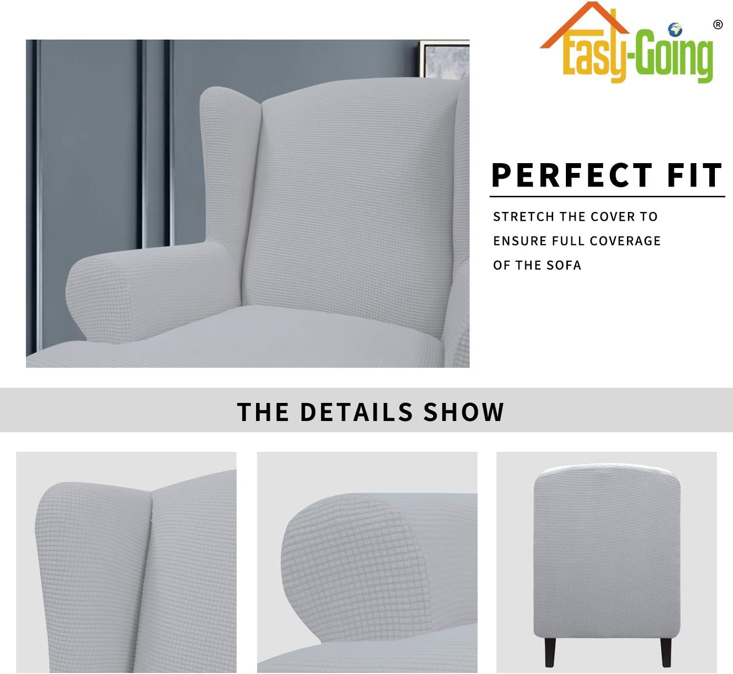 Dimensions: Large Wingchair Slipcover: Fit seat width is 30-35 in. More details please refer to the measurement guide in photo, please measure before purchasing.