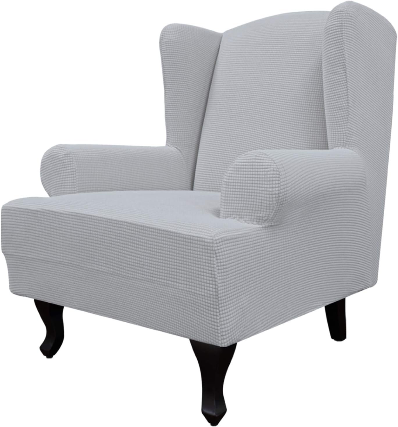 Easy-Going Stretch Wingback Chair Sofa Slipcover 1-Piece Sofa Cover Furniture Protector Couch Soft with Elastic Bottom, Spandex Jacquard Fabric Small Checks(Large,Silver Gray)