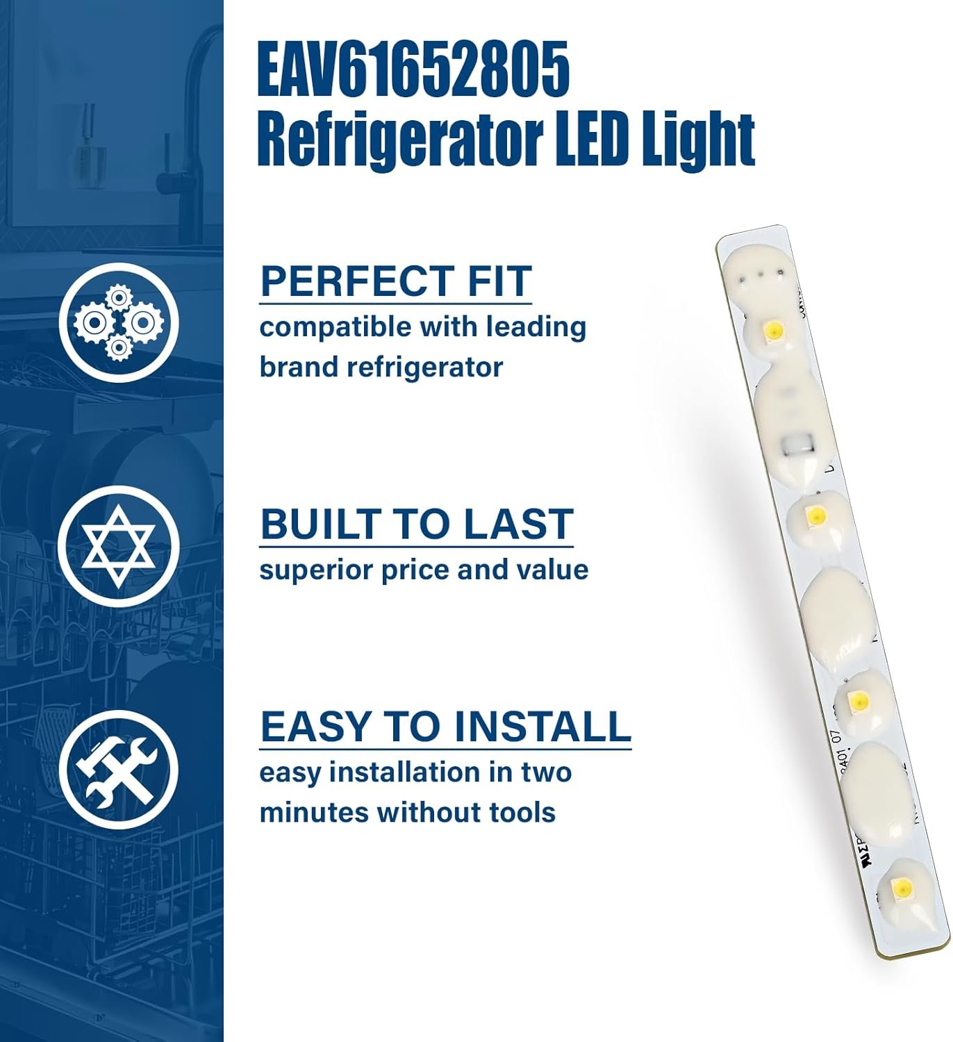 【Replace Number】The EAV61652805 refrigerators LED light replace: 3286328, AP5977184, PS11710309, EAP11710309.