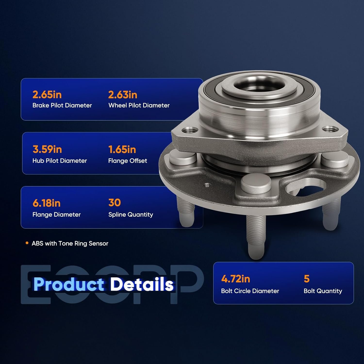 ECCPP 513288 2PCS Front/Rear Wheel Hub Bearing Assembly 5 Lugs w/ABS for 2010-2016 for Cadillac XTS ONLY Front, CTS, for Buick Allure, Regal, Lacrosse, for Chevy Malibu, Impala, Equinox