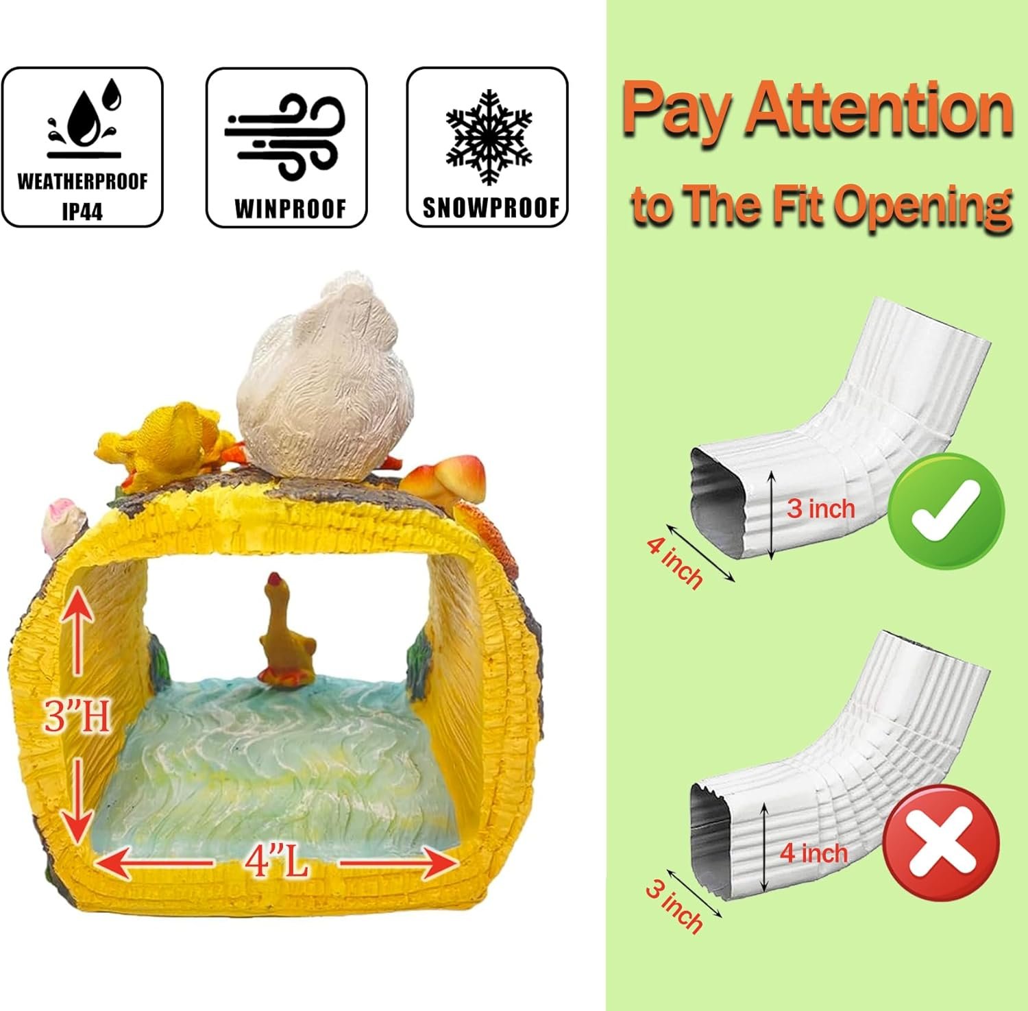 Eco-Friendly Duck Statue – Outdoor Decor Sculpture, Garden Animal Statue, Gutter Diverter Rain, Downspout Extender, Splash Block, Decorative Gutter Extension, Ornament, 3″x4″ Fit