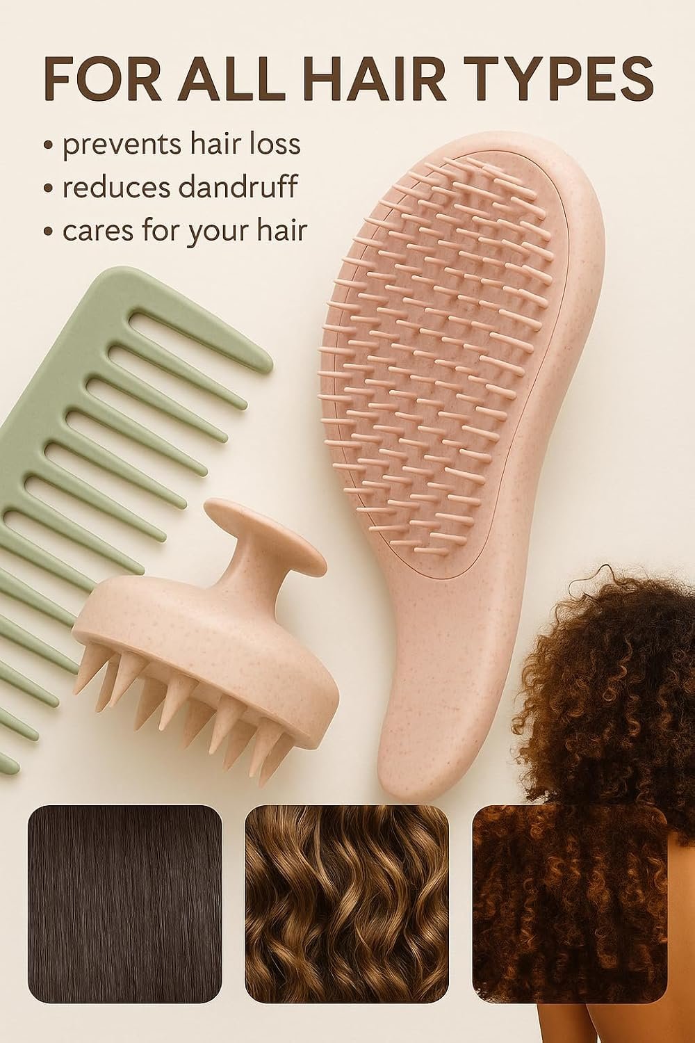 Effective Hair Care Set (3 pcs): Gently detangles, strengthens, and promotes healthy hair growth with brushes and scalp massager.