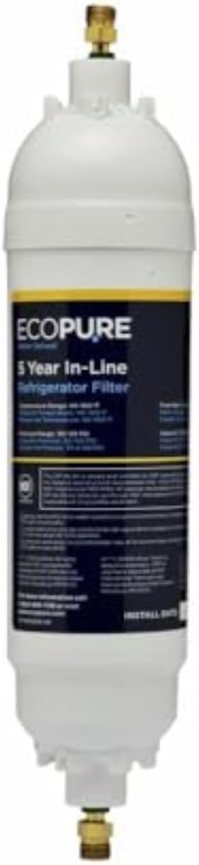 The EcoPure EPINL30 5-year in-line refrigerator filter is a no-brainer when it comes to a longer-lasting, reliable in-line filter. This universal filter easily connects with most major brands of refrigerators and icemakers, saving you money, hassle and time spent worrying about the water in your home, RV or boat. Easy to install as it comes with both 1/4″ compression and push-to-connect fittings for plastic or copper water lines. Designed to fit major brands of refrigerators and icemakers. Protects your refrigerator, drinking water, and ice maker from sediment and chlorine taste and odor. Designed, engineered and assembled in the USA. Bpa-free. Questions? Call the EcoPure helpline at (800) 693-1138.
