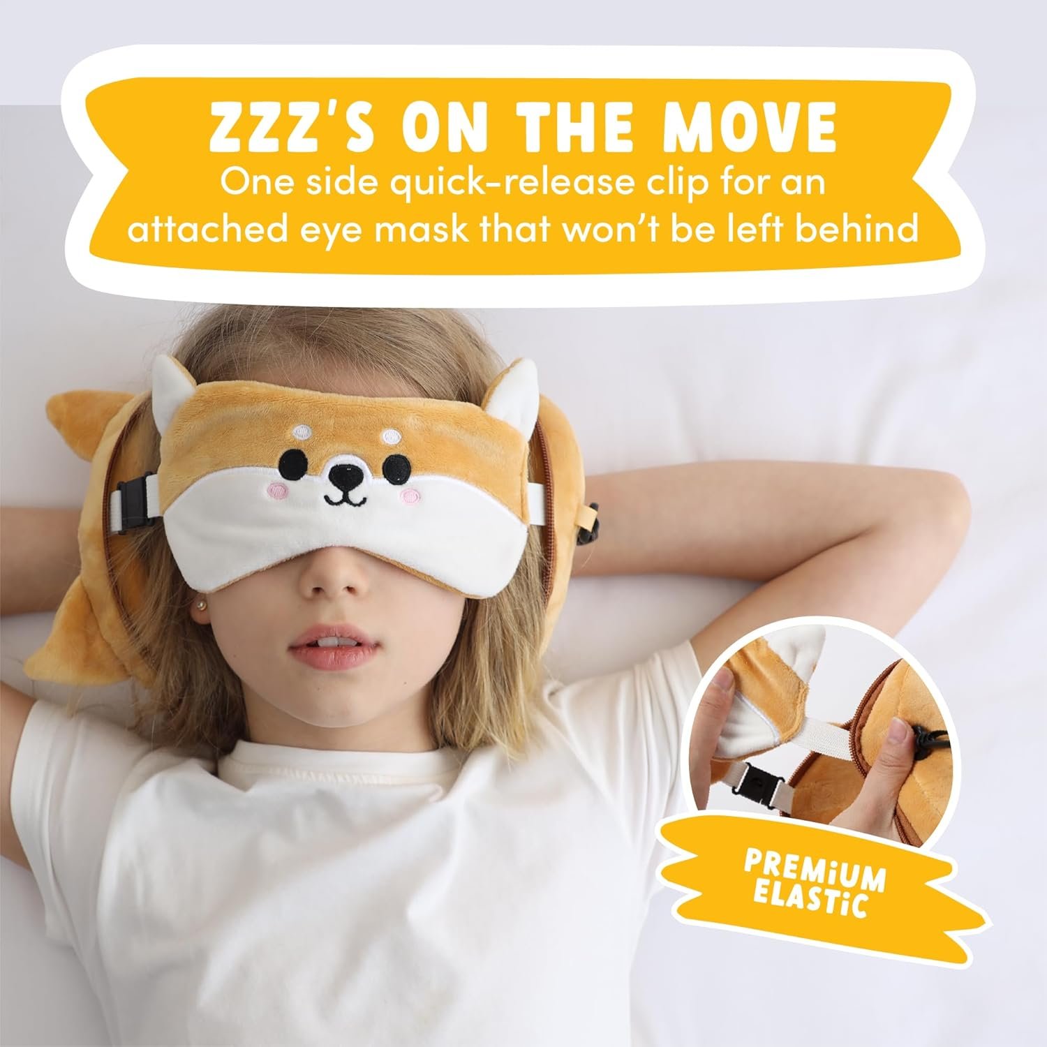 ecoZen Lifestyle Travel Pillow Set with Eye Mask – Comfort for Traveling Kids – Soft and Supportive Neck Pillow, Perfect for Plane, Car, or Train Journeys – Dog Design