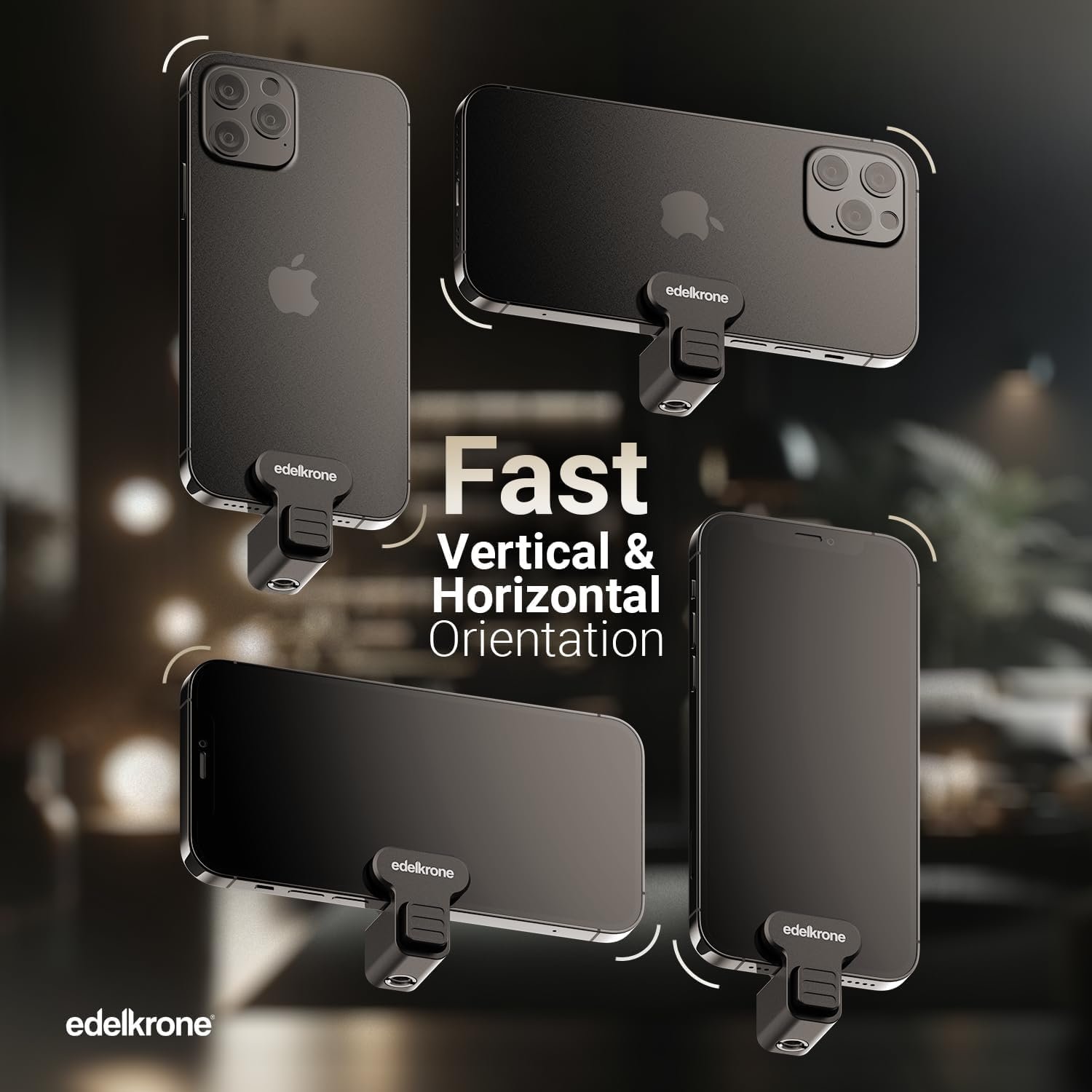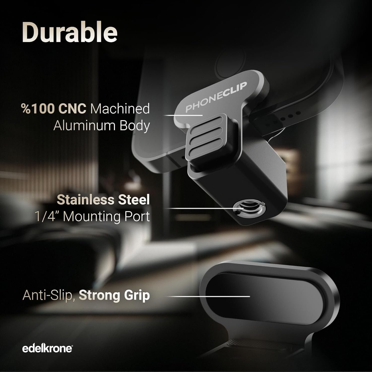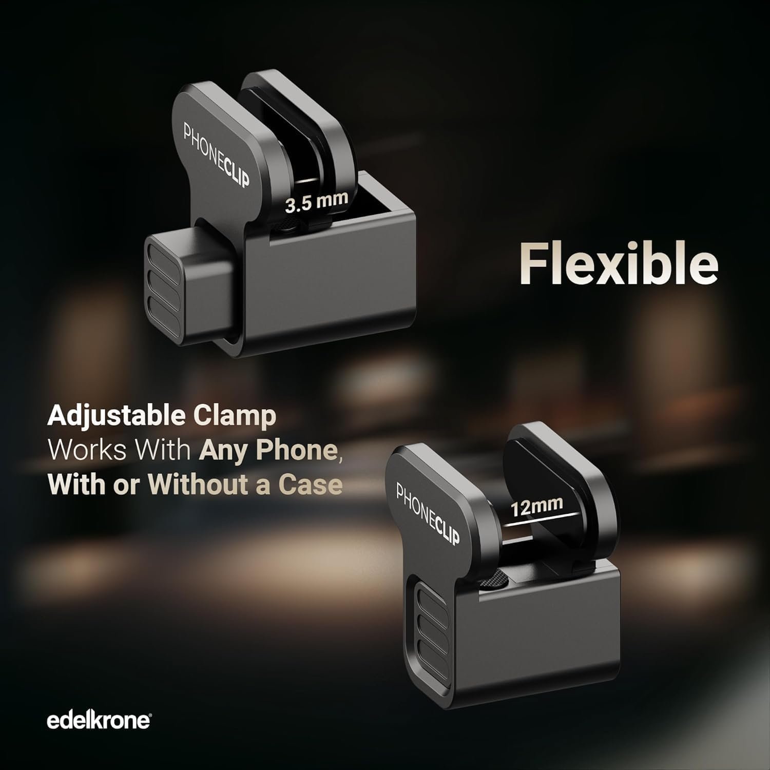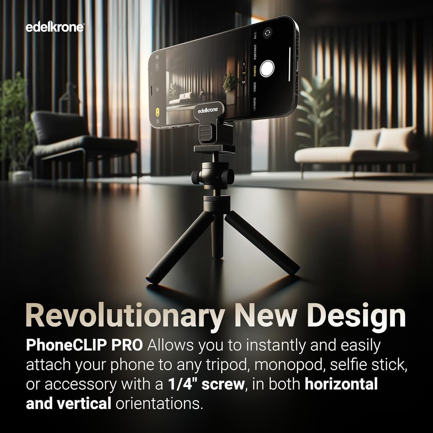 edelkrone PhoneCLIP PRO Phone Holder Vertical and Horizontal Tripod Mount Adapter – Tripod Mount Adjustable Clip – Adjustable Clip for iPhone, Android, Selfie Stick, Camera Stand