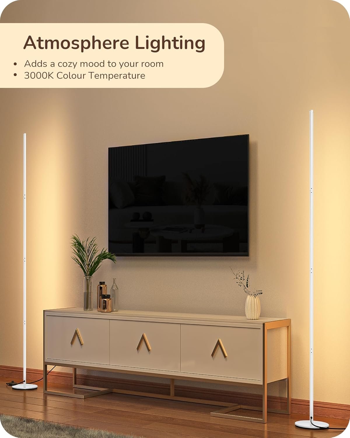 [Stylish & Minimalist Design] The slim silver metal pole of the LED corner lamp offers a sleek, modern look; compact design saves space, blending seamlessly into any corner or beside a sofa, enhancing your space with style and elegance