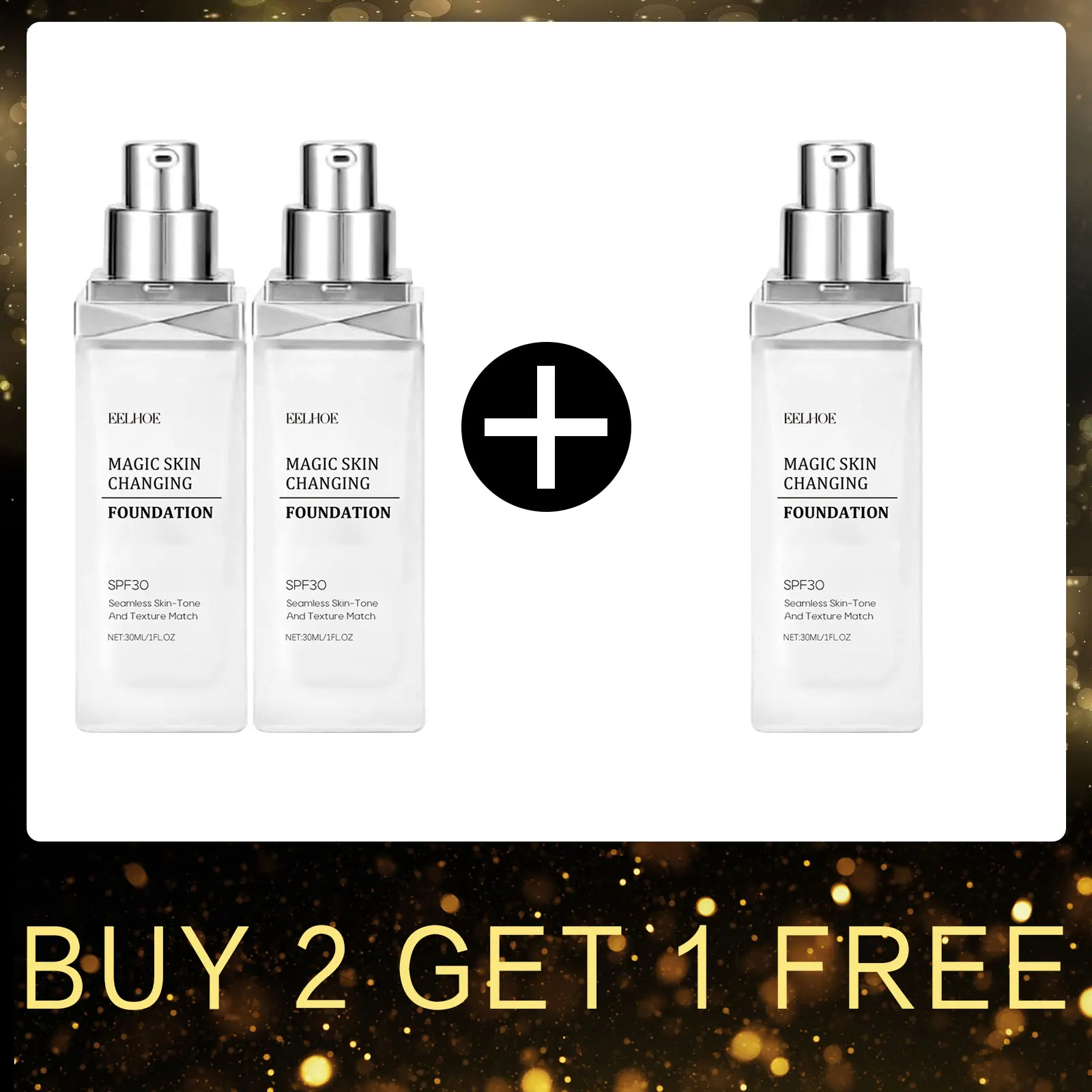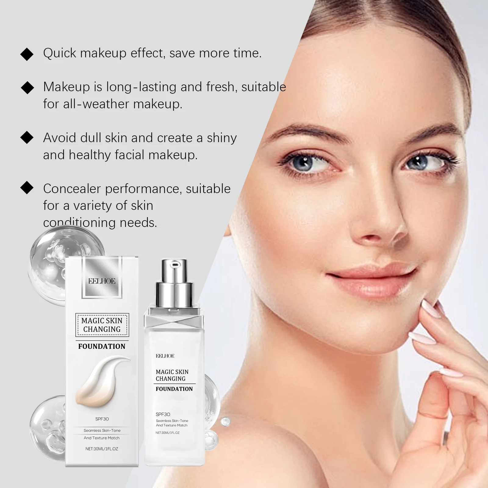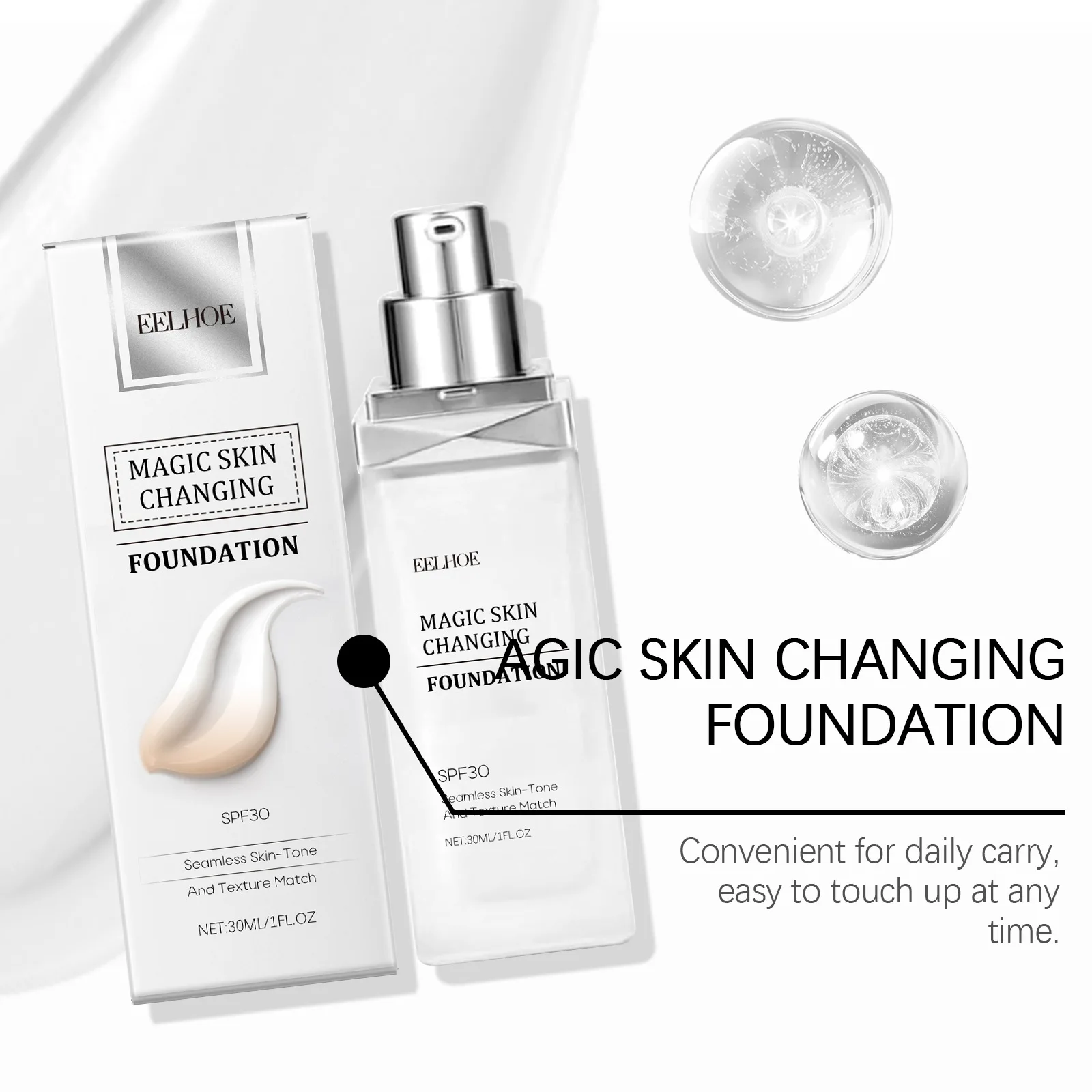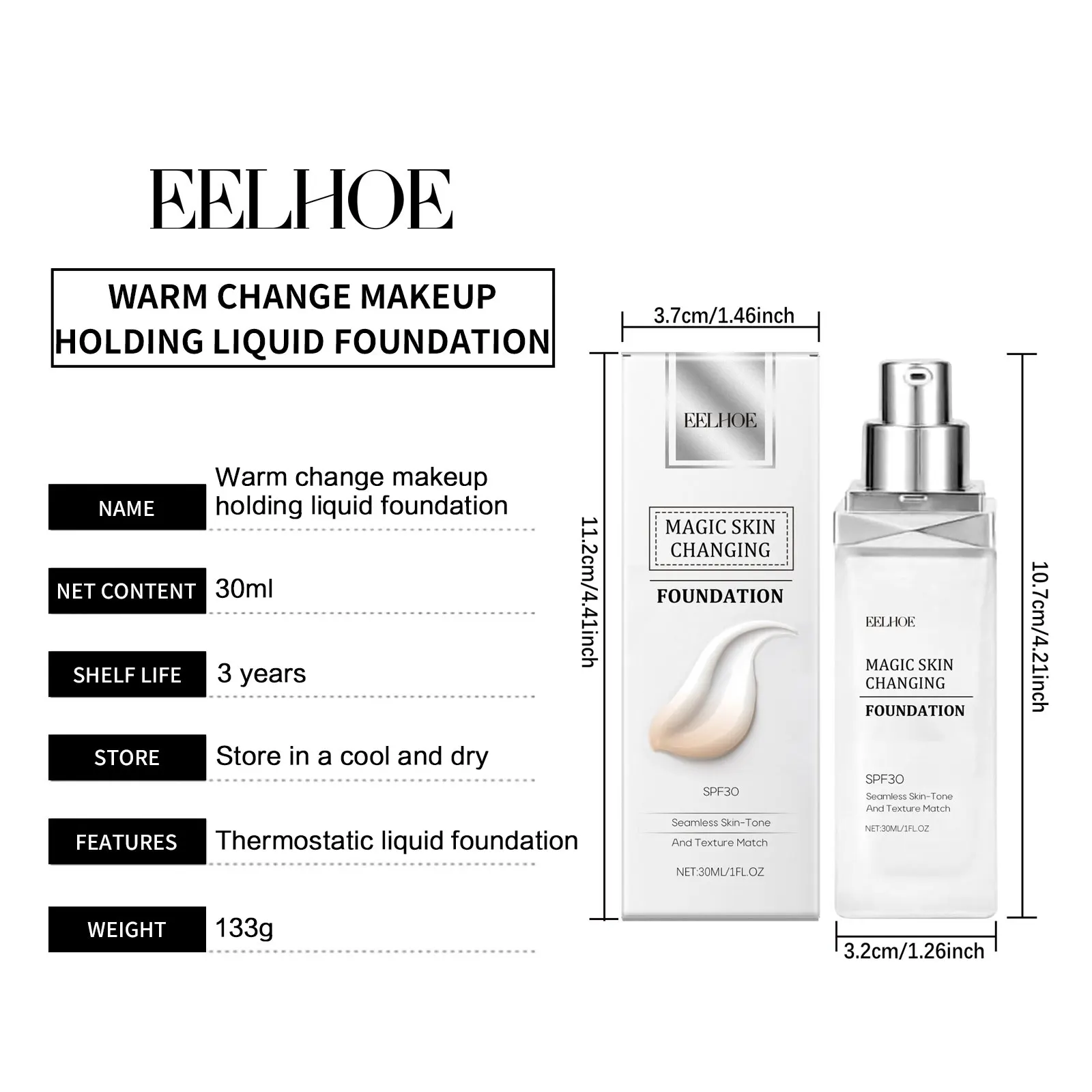 ​EELHOE Color Changing Foundation Liquid Waterproof Oil Control Matte Brightening Face High Coverage Base Makeup Foundation 30ml