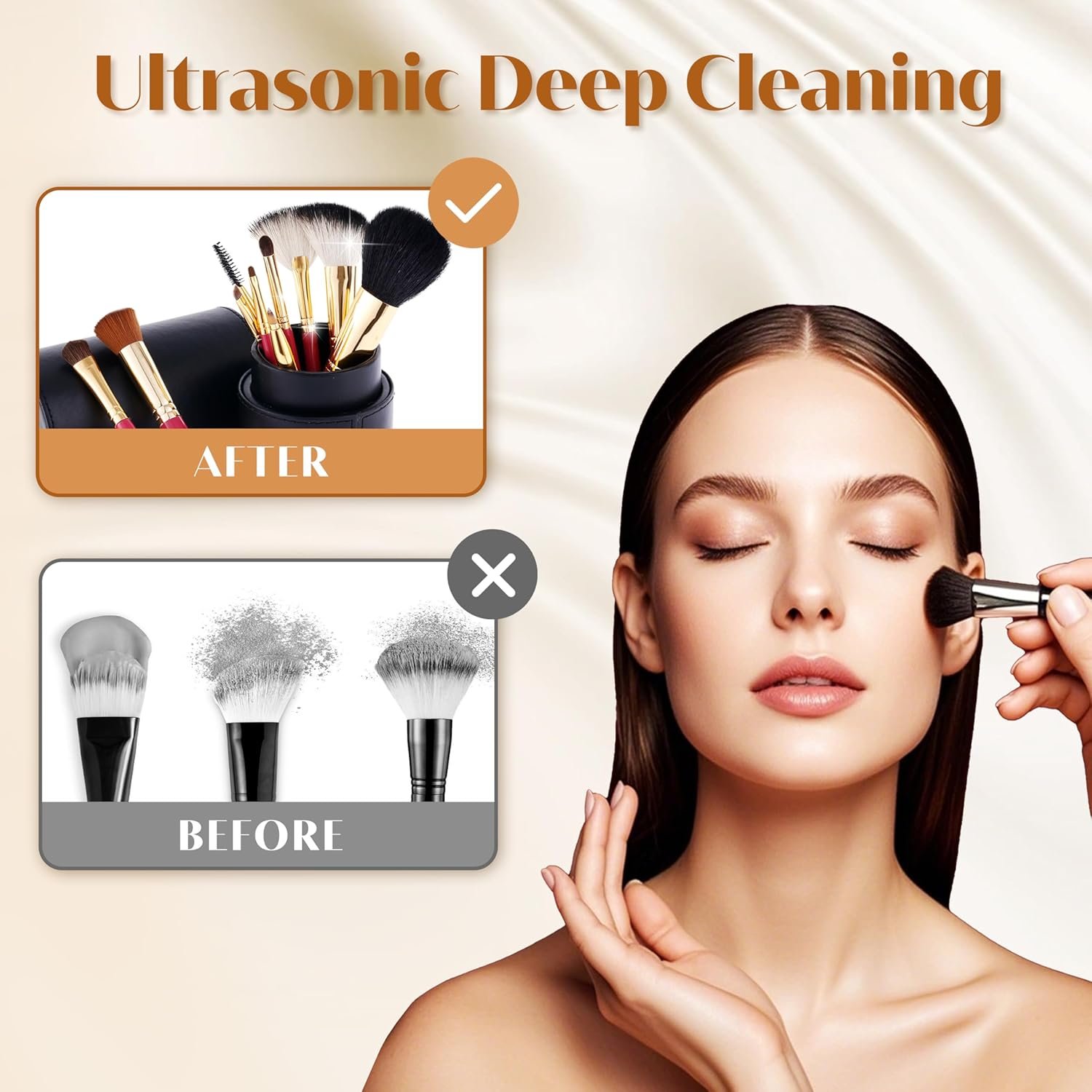 [Easy to Use] Add water and make up brush cleaner in a 10:1 ratio, ensuring that the water level doesn’t exceed the maximum limit. Once place 3-4 brushes, after the initial cleaning, rinse the brushes with water to remove residue brushes cleaner. For heavily soiled brushes, a second cleaning may be necessary, or use the silicone pad for manual cleaning. Once deep cleaned, flip the silicone cover to allow brushes to air dry. Once dry, store the brushes inside to keep them protected from dust.