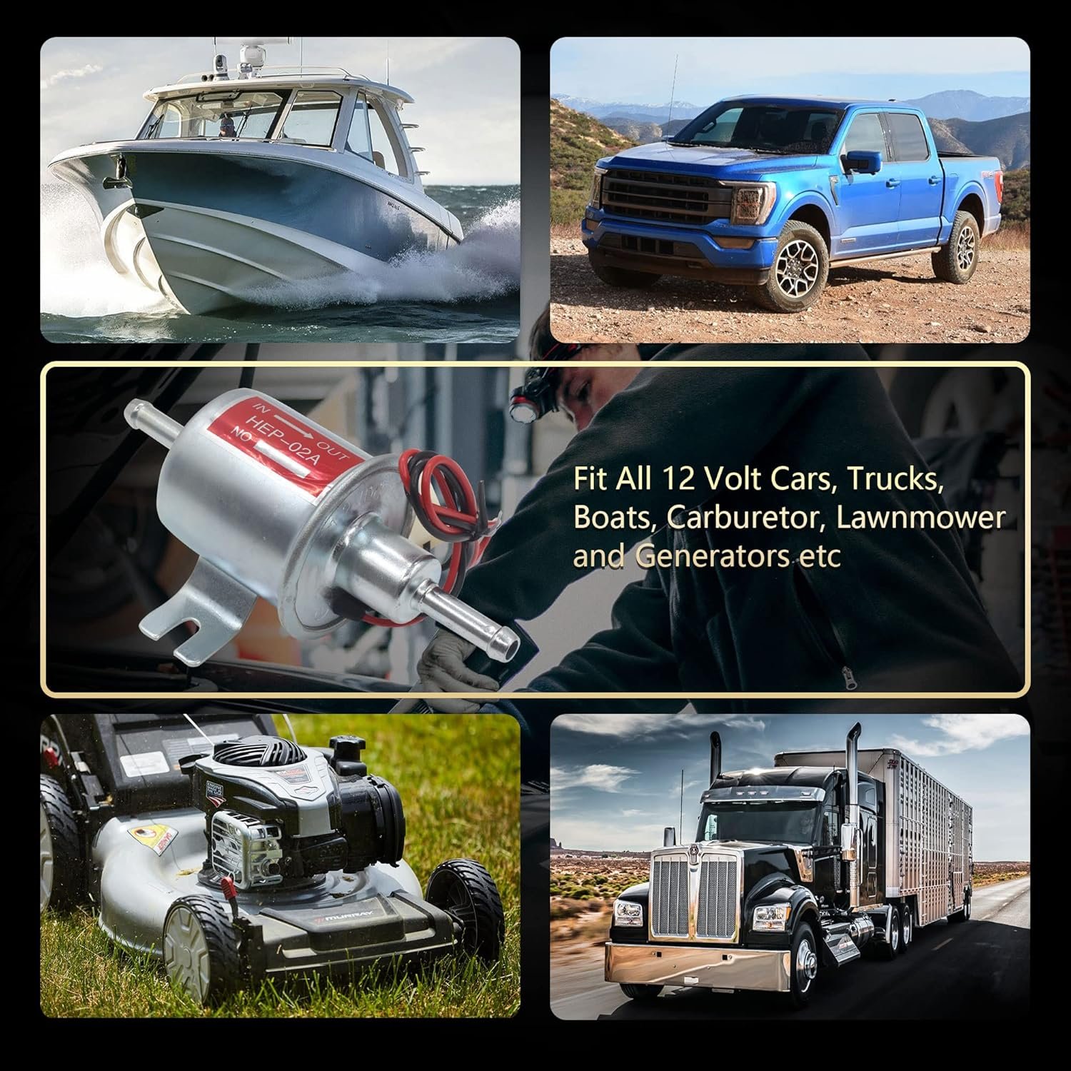 Effoexpart Universal Electric Fuel Pump 12V Transfer Low Pressure 5-9 PSI Gas Diesel Inline Compatible with Carburetor Motocycle Trucks Boats ATV HEP-02A
