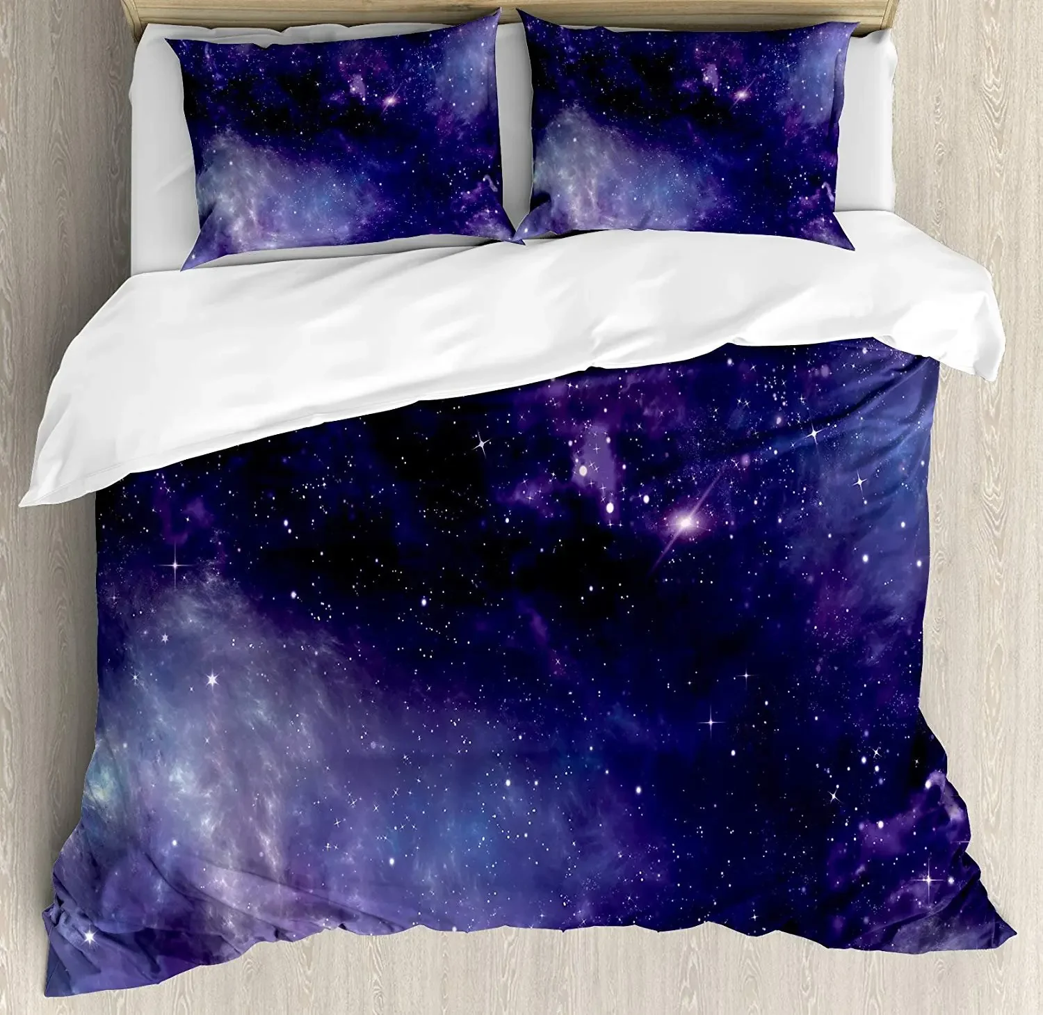 Eggplant Bedding Set Sky with the Open Space Star Constellations and Gloomy Atmosphere Heavenly Bodies Duvet Cover Bed Set